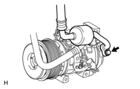 (d) Connect the cooler refrigerant suction hose on the cooler compressor with the bolt.