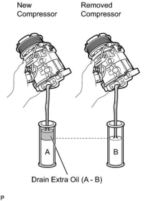 - If the amount of oil remaining in the removed compressor is too low, check for an oil leak.