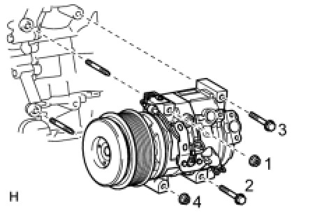 HINT: Tighten the bolts and nuts in the order shown in the illustration to install the cooler compressor.