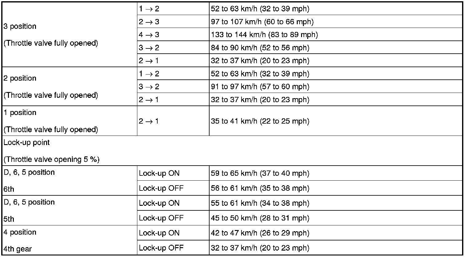 SPECIFICATIONS: AB60E AUTOMATIC TRANSMISSION / TRANSAXLE: SERVICE DATA