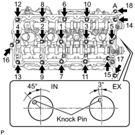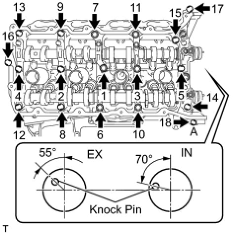 Install the camshaft housing, and install the 18 bolts in the order shown in the illustration.
