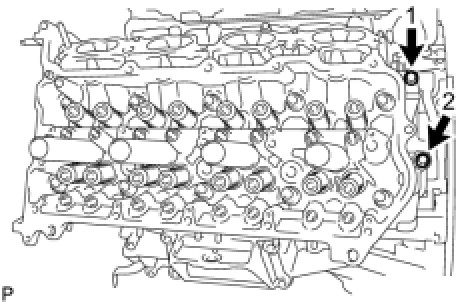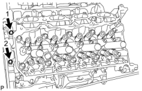 Install and uniformly tighten the 2 cylinder head bolts.