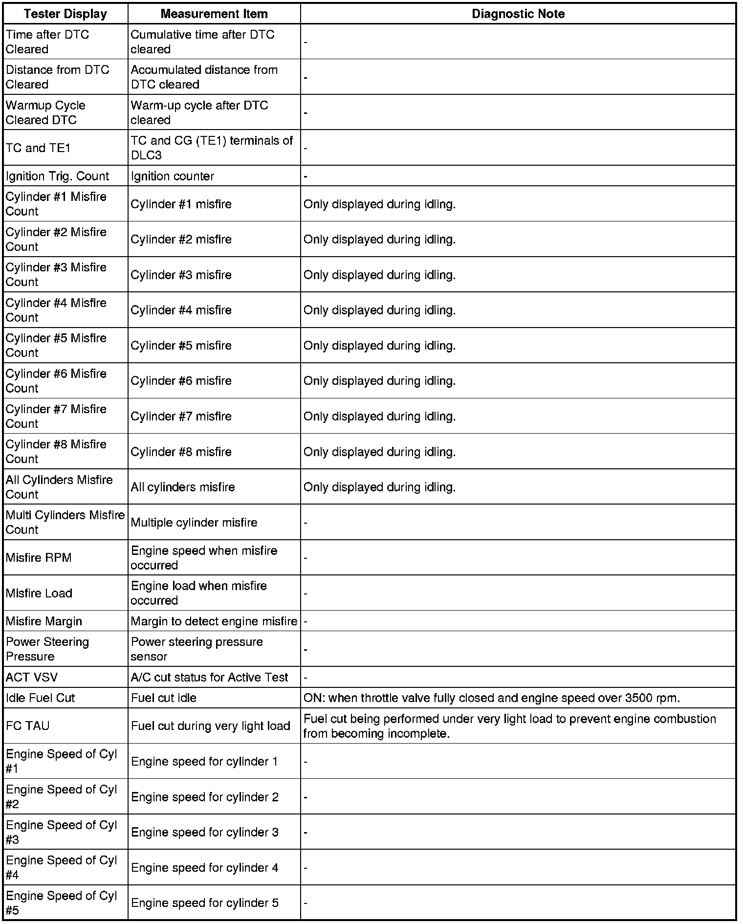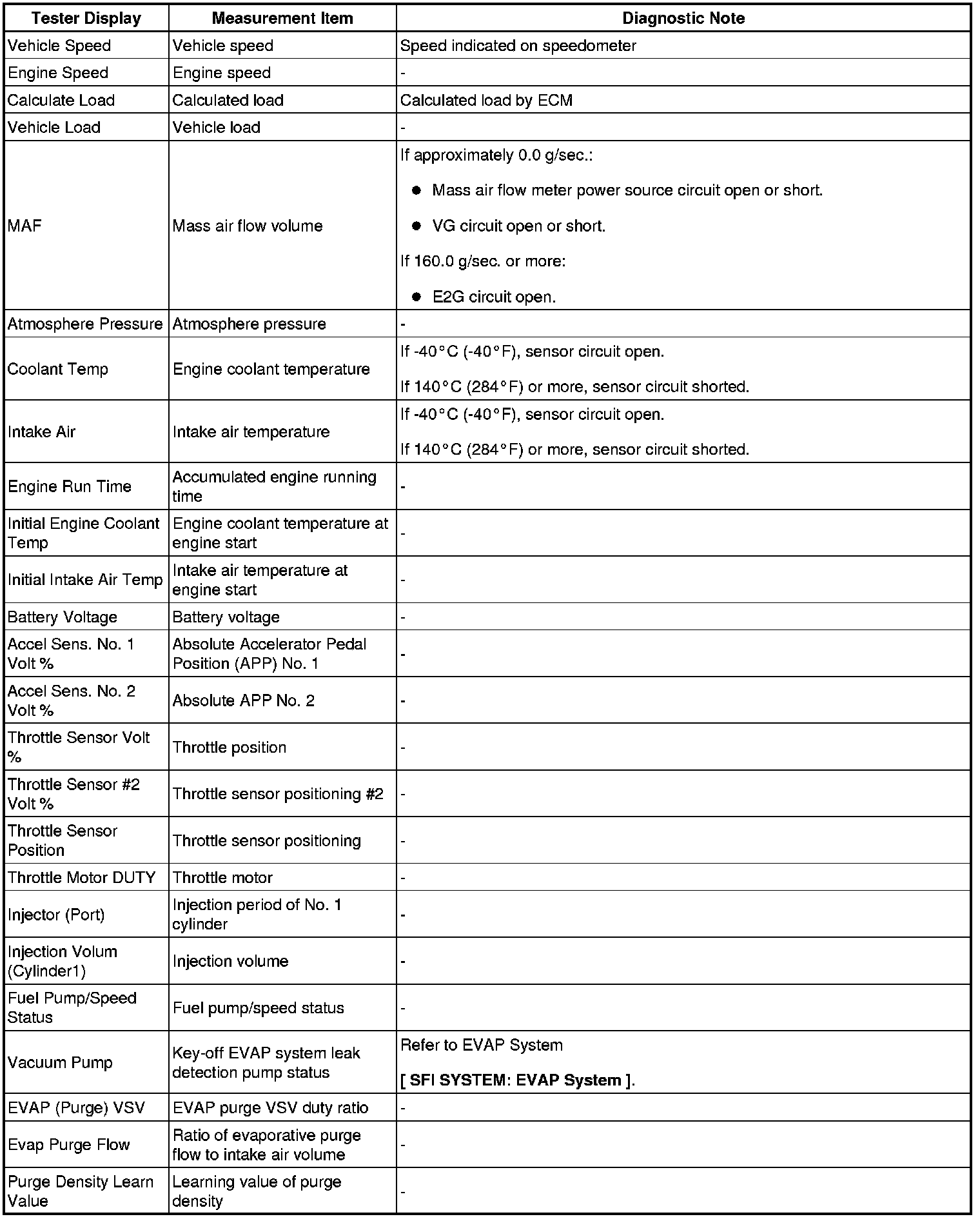 2UZ-FE ENGINE CONTROL: SFI SYSTEM: FREEZE FRAME DATA