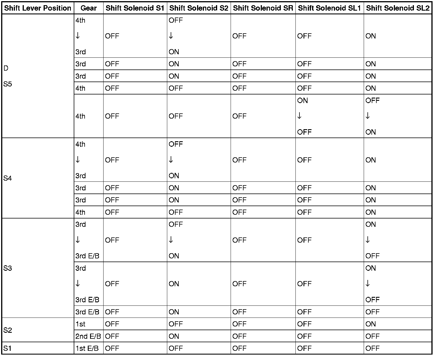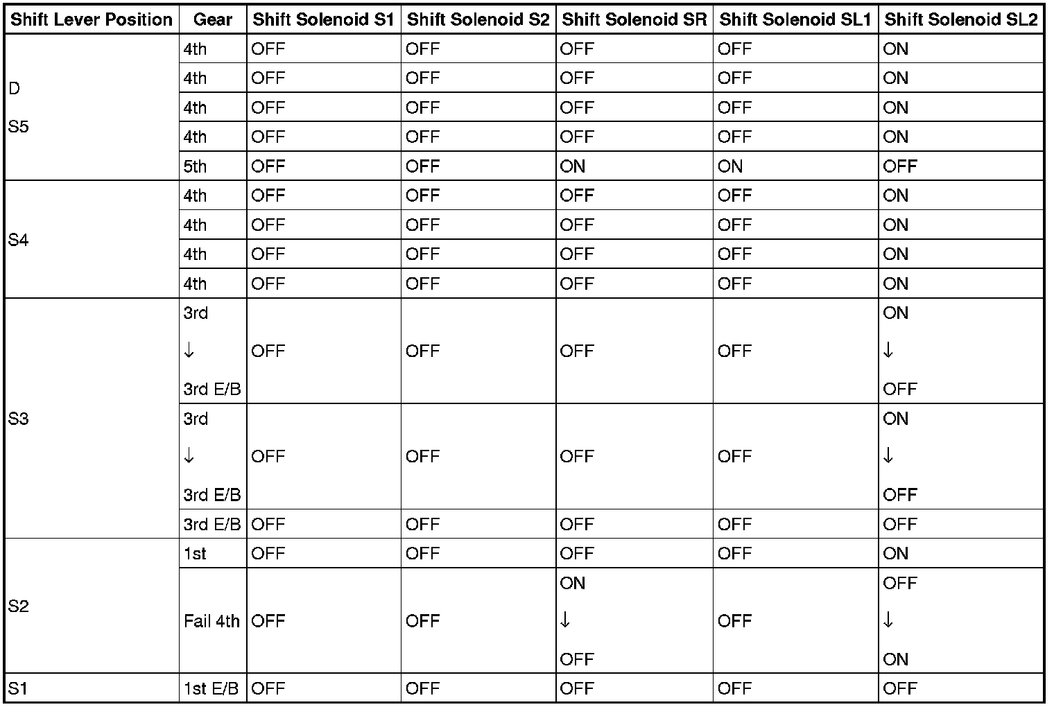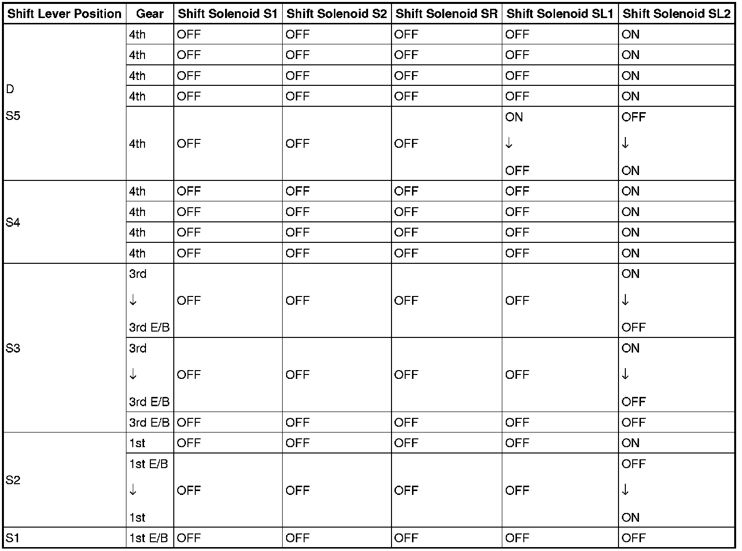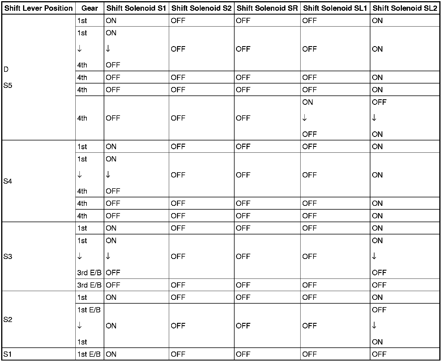 Shift Solenoid Valve Normal Operation Chart