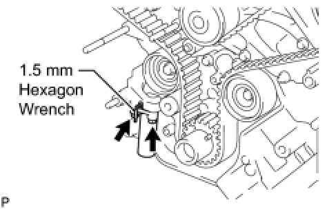 TIMING BELTTemporarily install the belt tensioner with the 2 bolts. Tighten the 2 bolts.