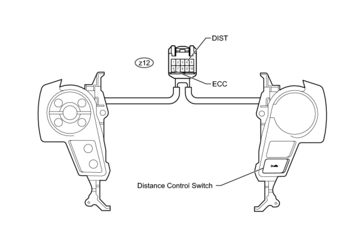 HINT: When a malfunction is detected in the distance control switch, replace the steering pad switch assembly.