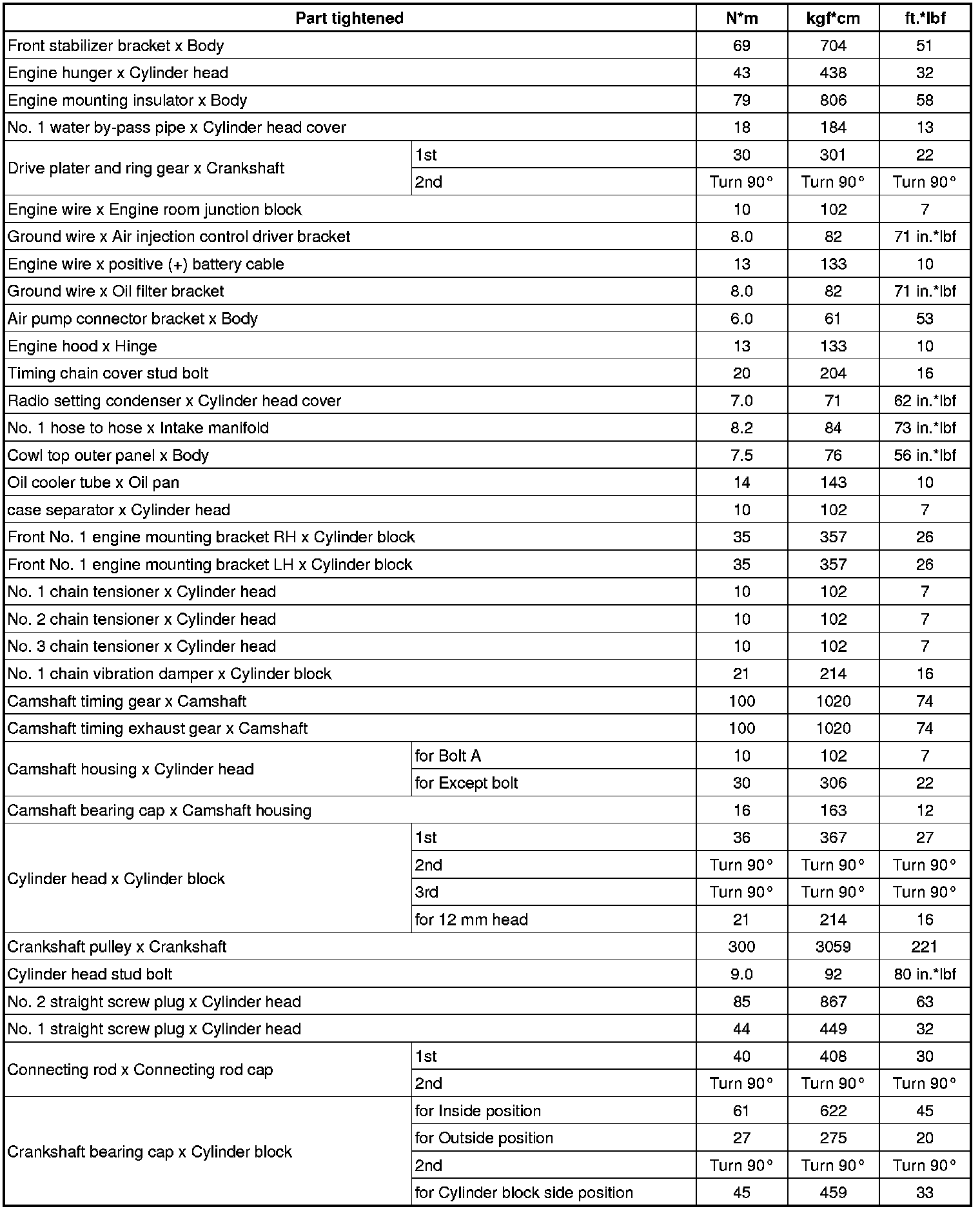 SPECIFICATIONS: 3UR-FE ENGINE MECHANICAL: TORQUE SPECIFICATIONS