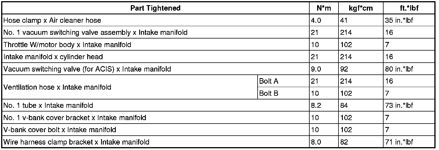 SPECIFICATIONS: 3UR-FE INTAKE / EXHAUST: TORQUE SPECIFICATIONS