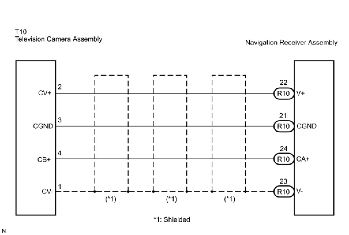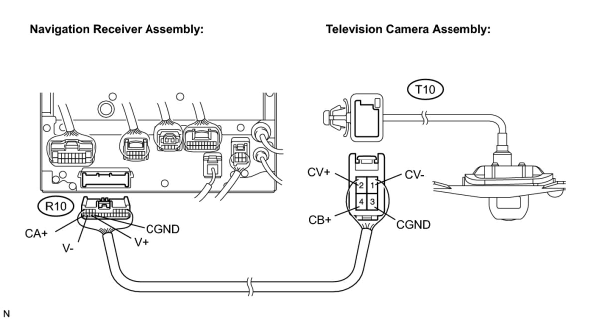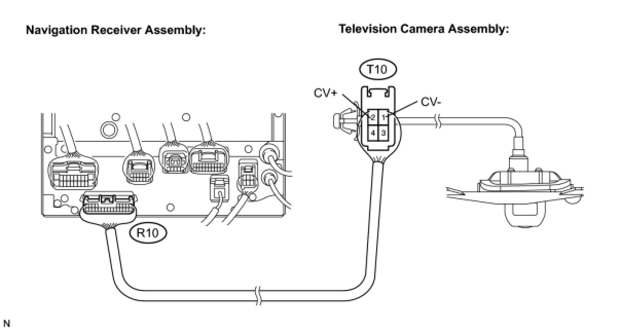 PARK ASSIST / MONITORING: REAR VIEW MONITOR SYSTEM: Display Signal Circuit between Navigation Receiver Assembly and Television Camera Assembly