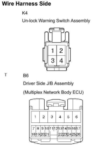 4. CHECK HARNESS AND CONNECTOR (UN-LOCK WARNING SWITCH ASSEMBLY - DRIVER SIDE J/B)