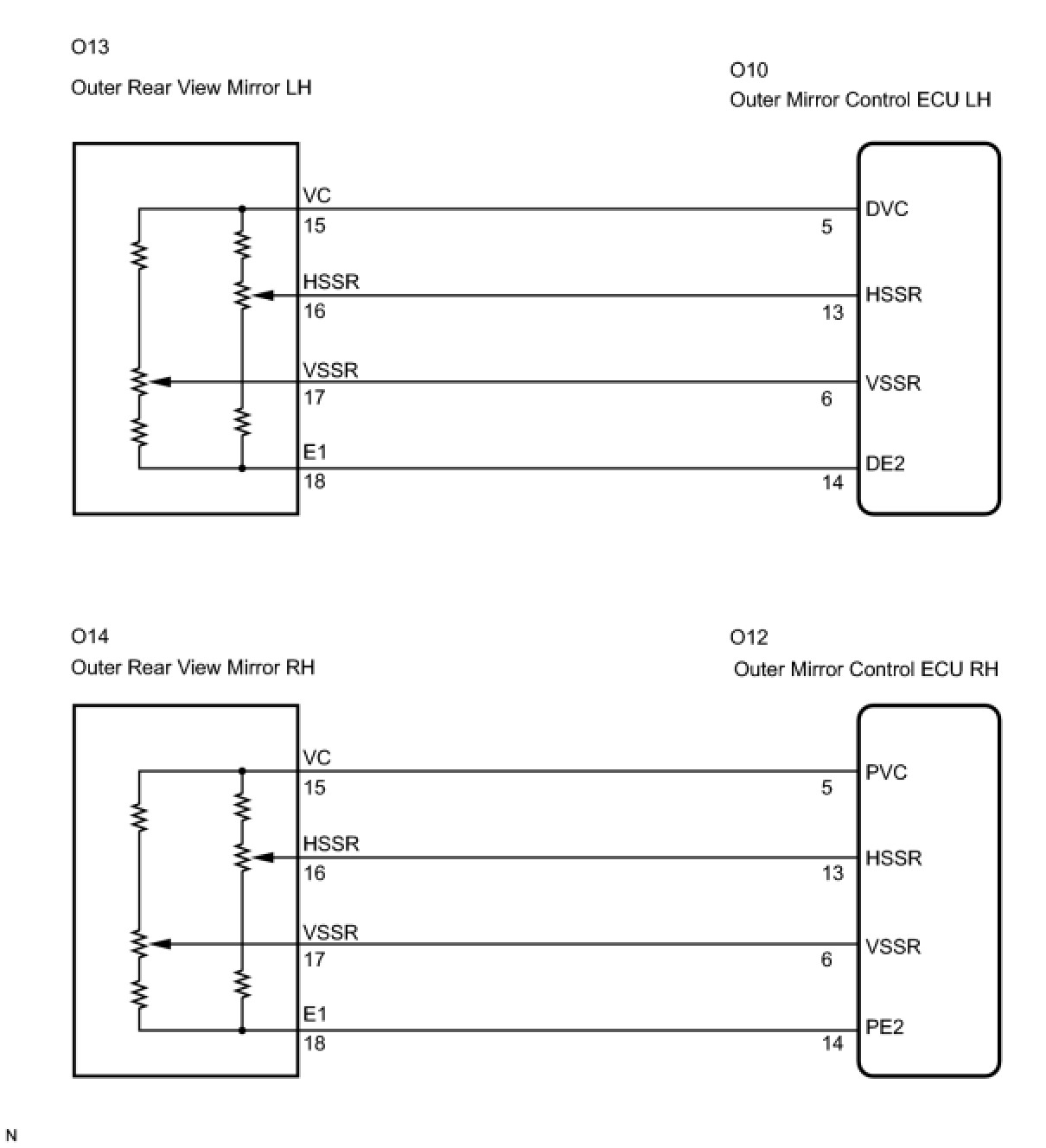 MIRROR: POWER MIRROR CONTROL SYSTEM (w/ Memory): Position Sensor Circuit