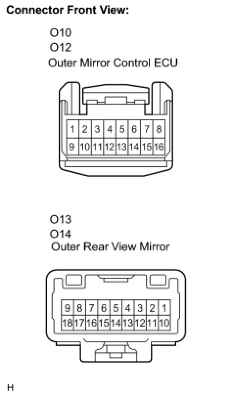 (b) Disconnect the O13 or O14 outer mirror connector.