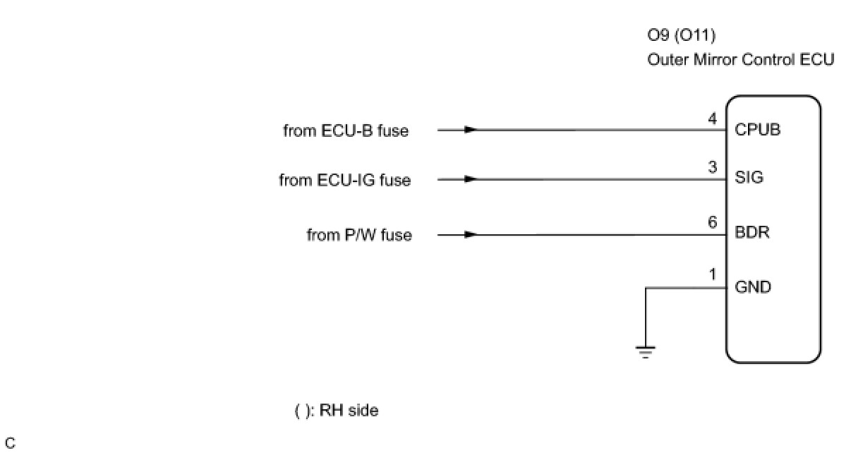 This is the power source circuit for the outer mirror control ECU.