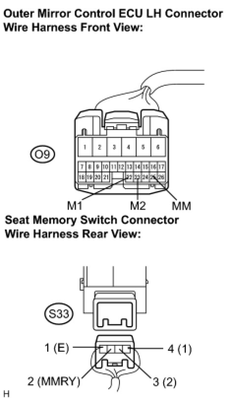 4. CHECK HARNESS AND CONNECTOR (OUTER MIRROR CONTROL ECU LH - SEAT MEMORY SWITCH)