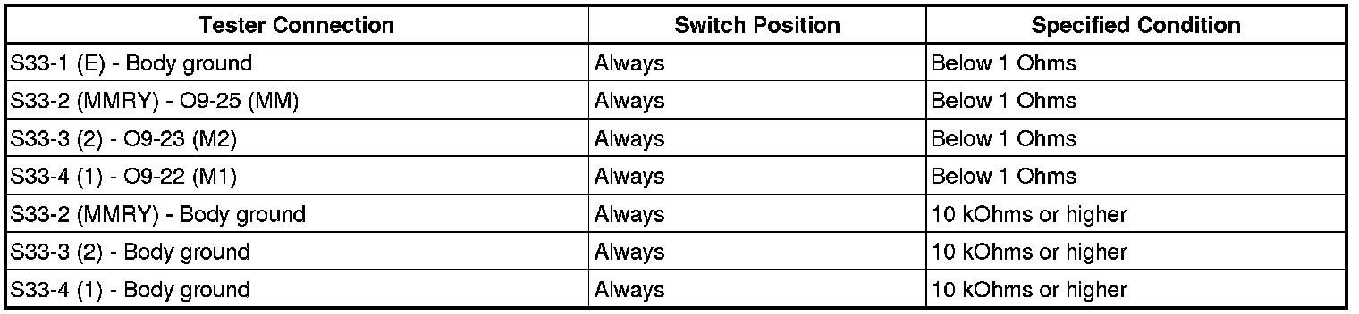 NG -- CHECK HARNESS AND CONNECTOR (OUTER MIRROR CONTROL ECU LH - SEAT MEMORY SWITCH)