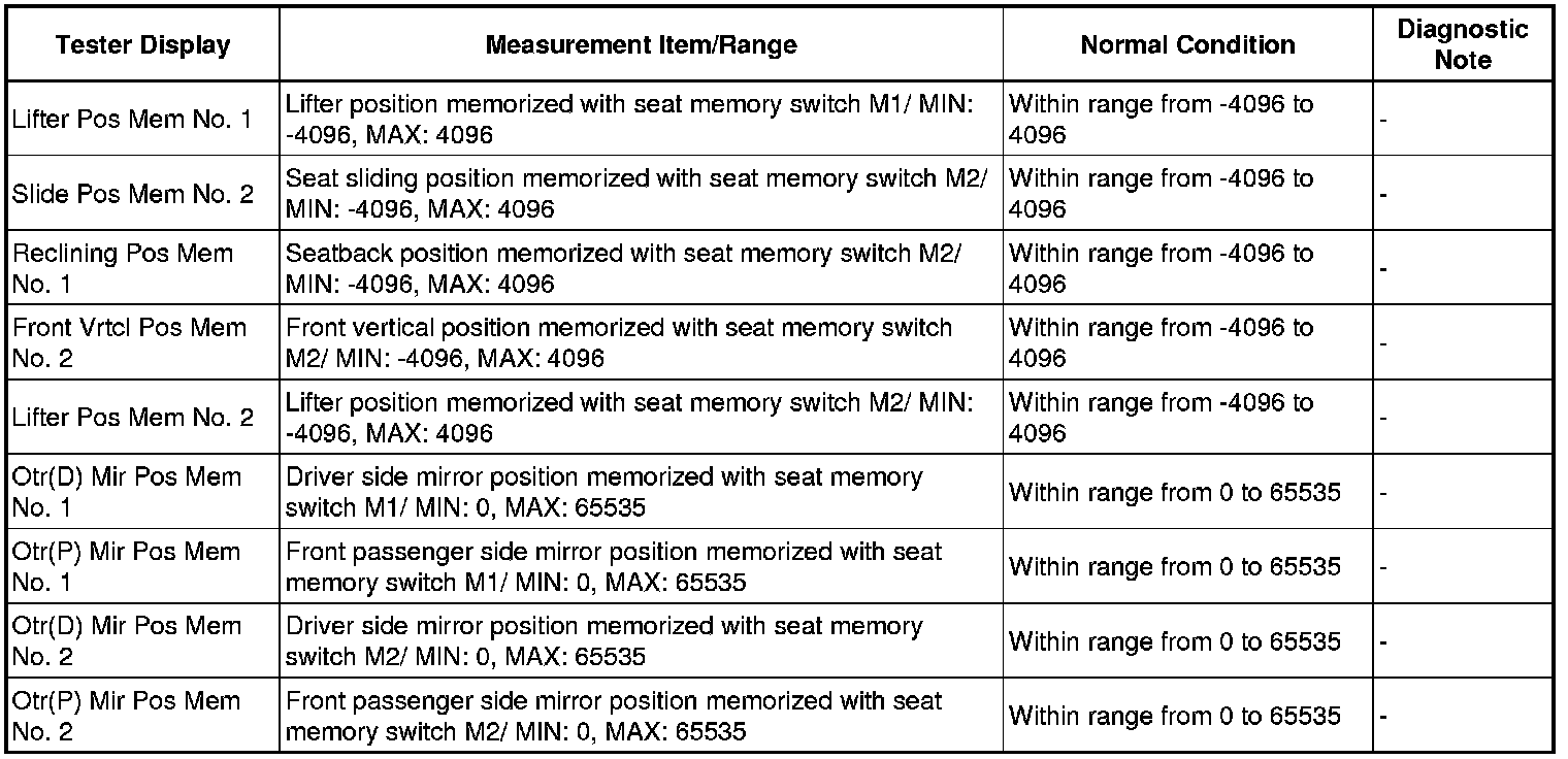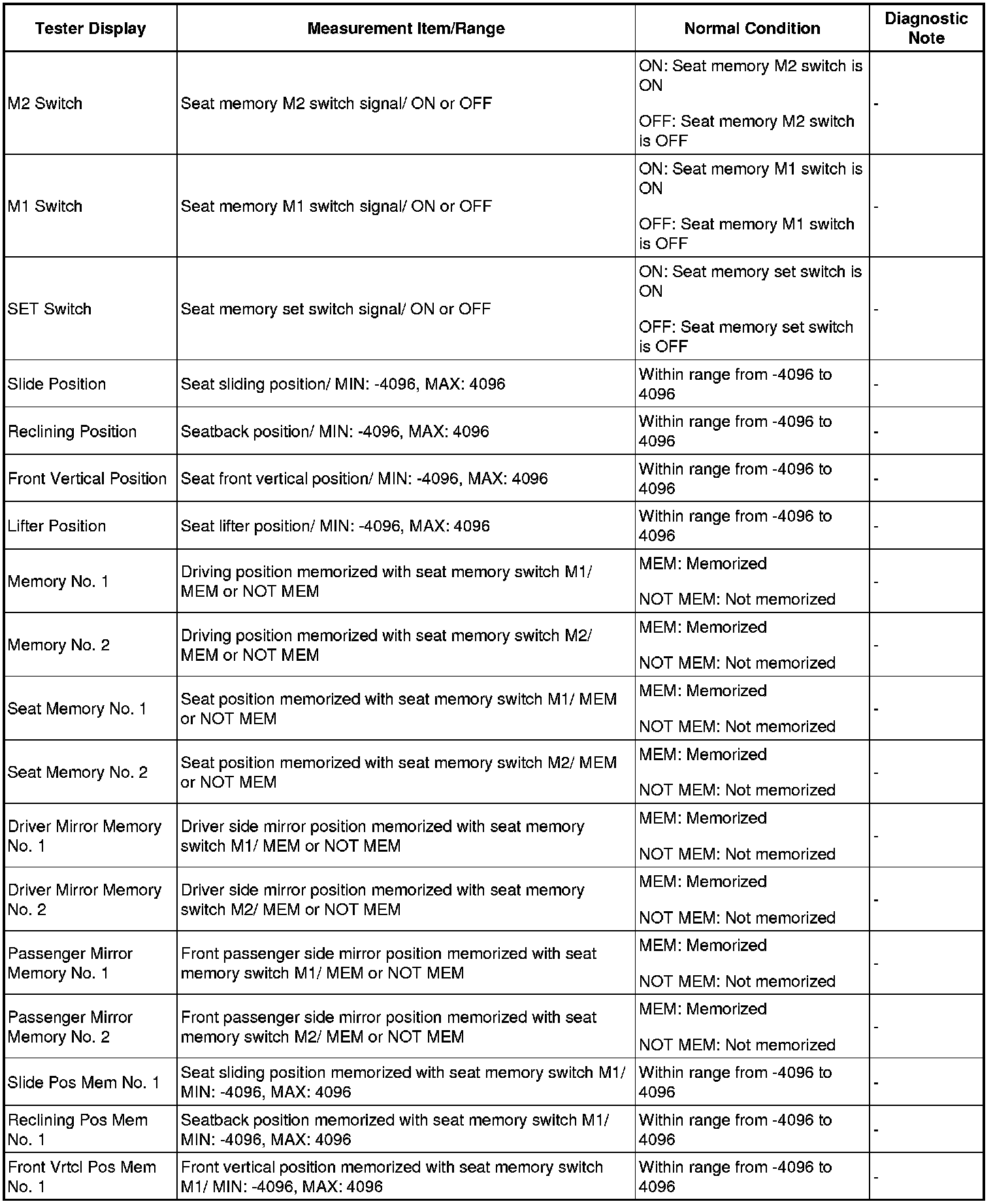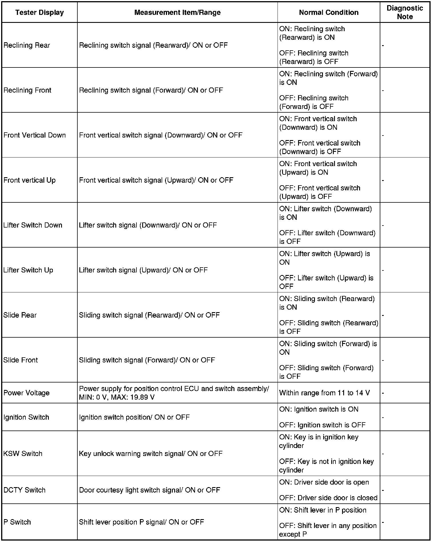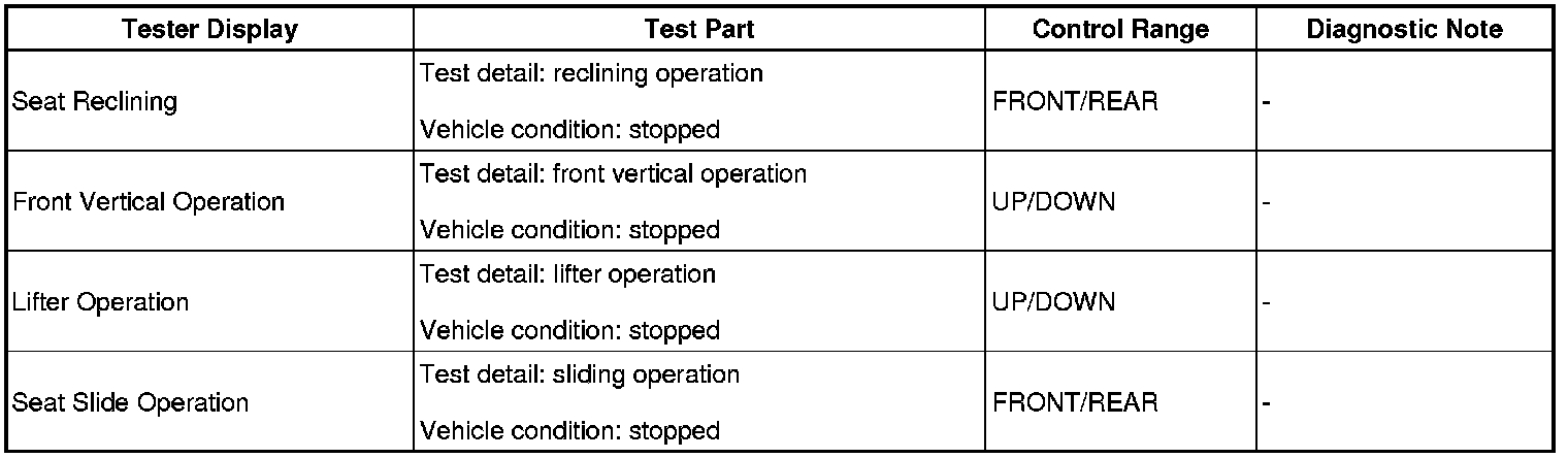 SEAT: FRONT POWER SEAT CONTROL SYSTEM: DATA LIST / ACTIVE TEST