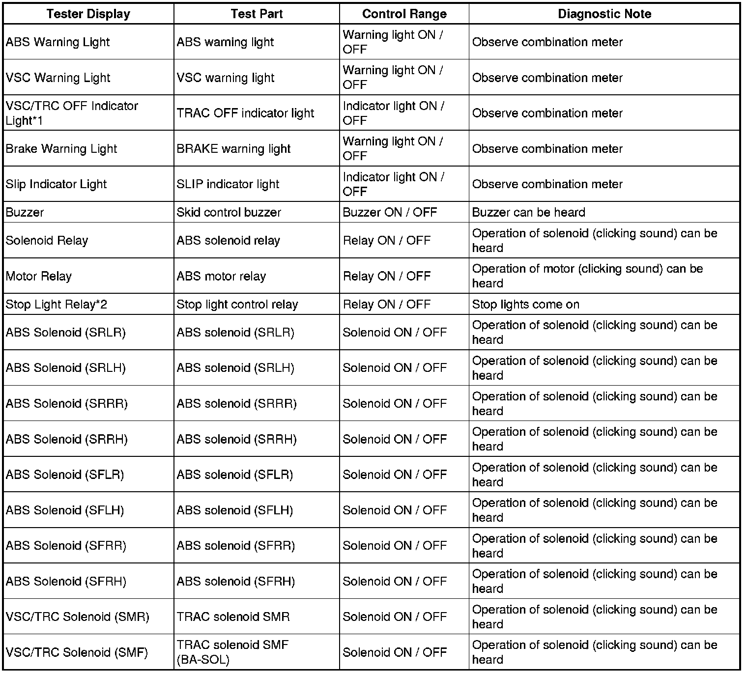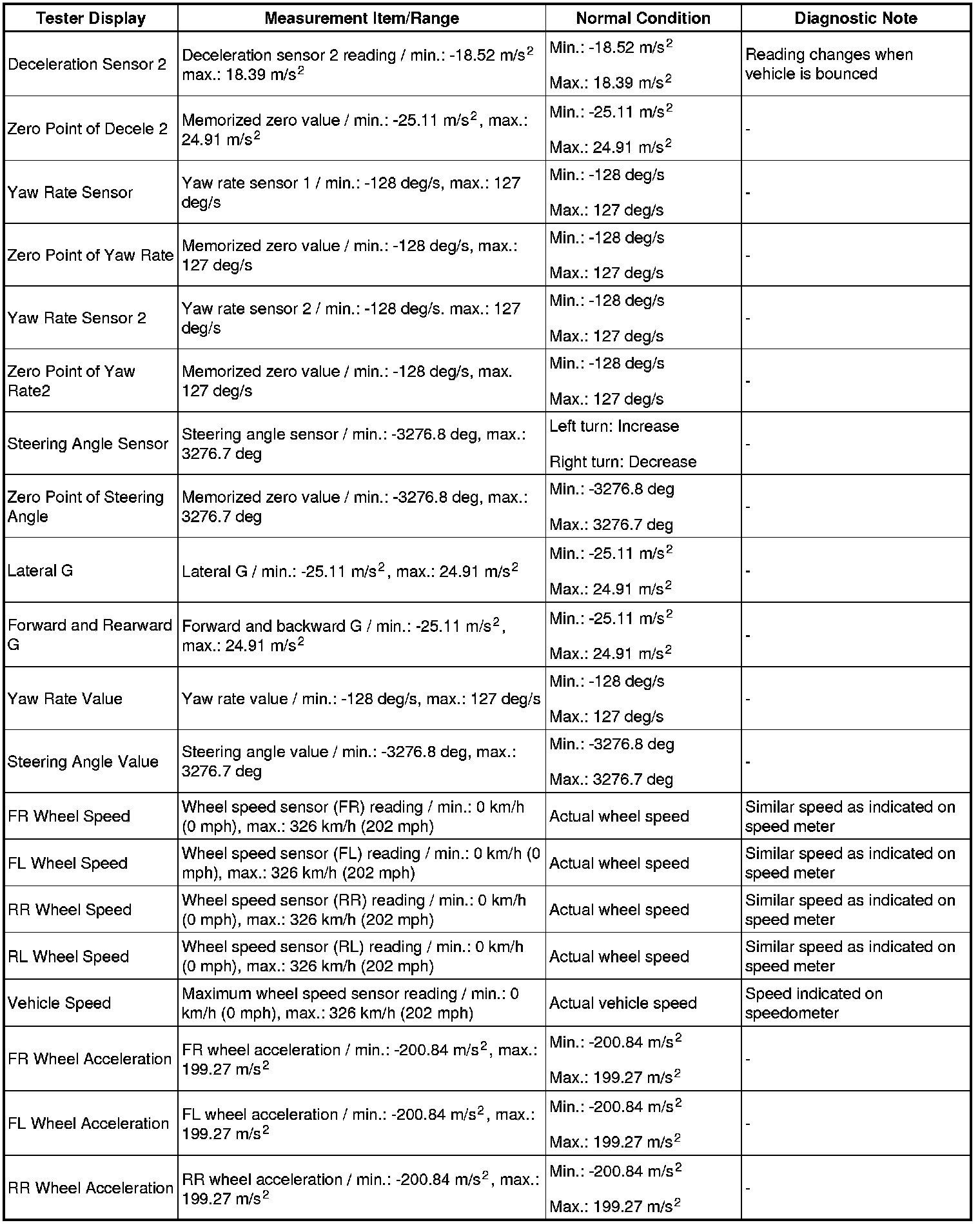 BRAKE CONTROL: VEHICLE STABILITY CONTROL SYSTEM: DATA LIST / ACTIVE TEST
