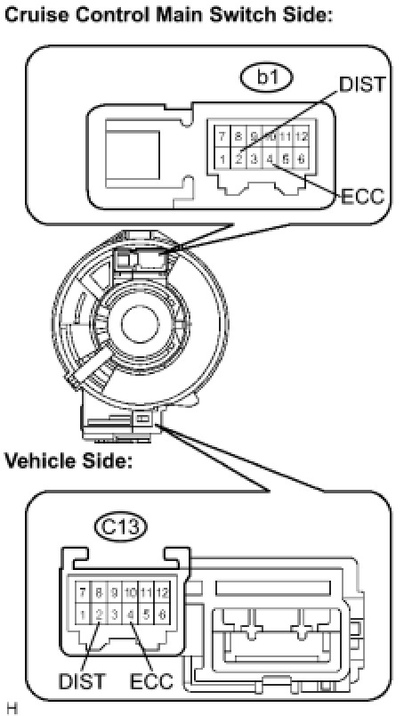 HINT: When a malfunction is detected in the distance control switch, replace the steering pad switch assembly.
