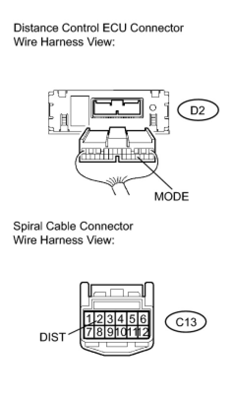 3. CHECK HARNESS AND CONNECTOR (DISTANCE CONTROL ECU - SPIRAL CABLE)