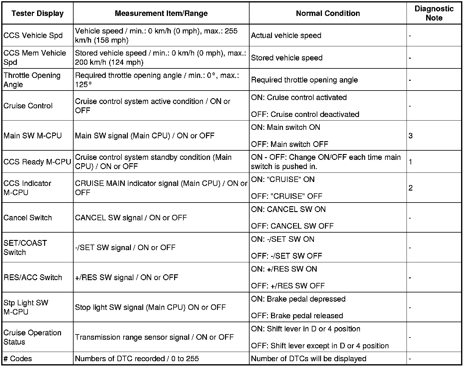 CRUISE CONTROL: CRUISE CONTROL SYSTEM: DATA LIST / ACTIVE TEST