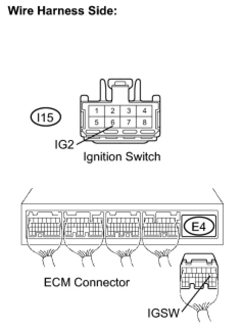 5. CHECK HARNESS AND CONNECTOR (IGNITION SWITCH - ECM)