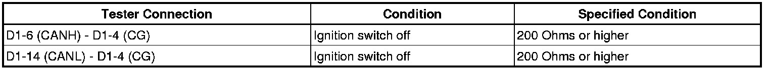 HINT: Operating the ignition switch, any switches, or any doors triggers related ECU and sensor communication with the CAN. This communication will cause the resistance value to change.