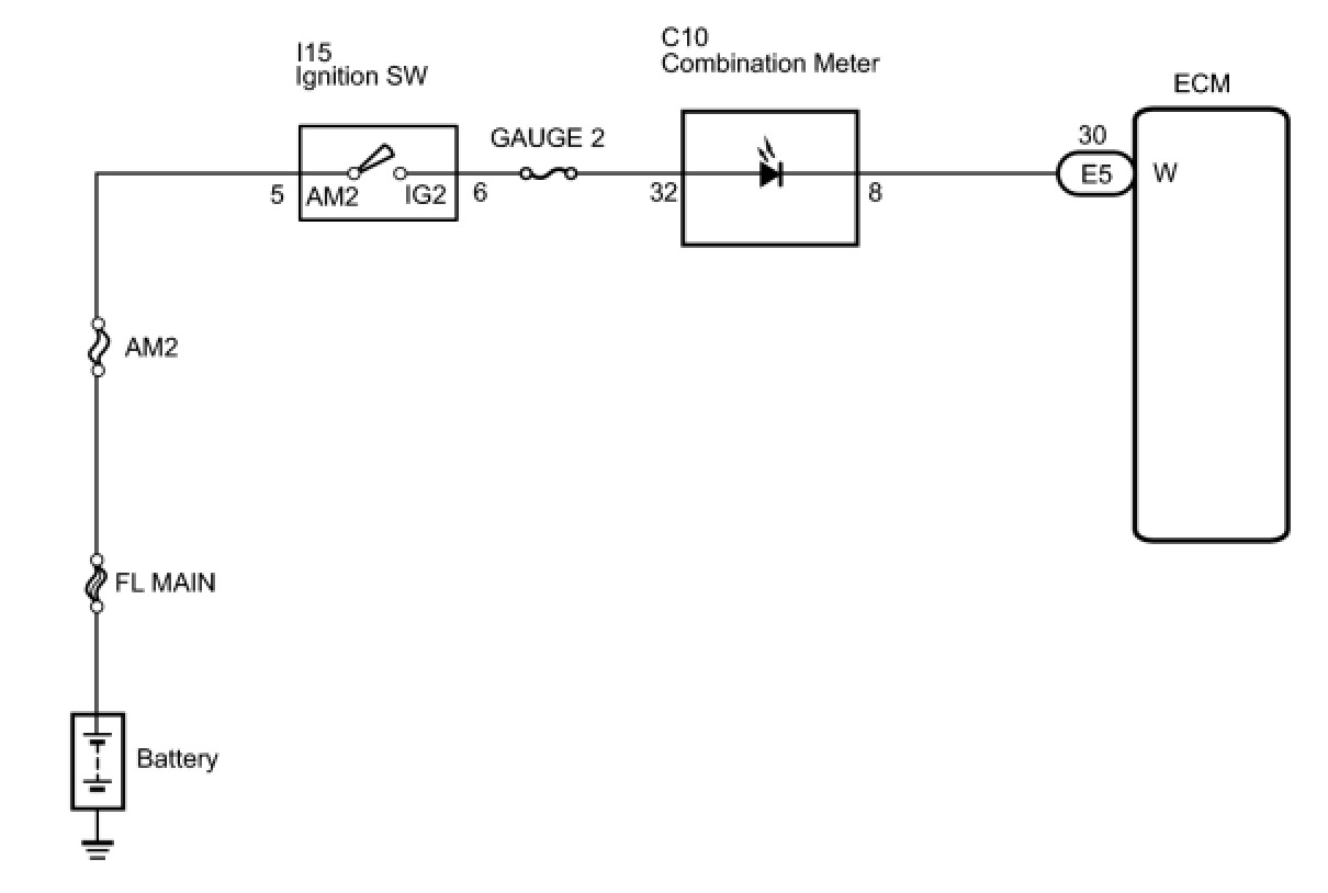 The MIL (Malfunction Indicator Lamp) is used to indicate vehicle malfunctions detected by the ECM. When the ignition switch is turned to the ON position, power is supplied to the MIL circuit, and the ECM provides the circuit ground which illuminates the MIL.