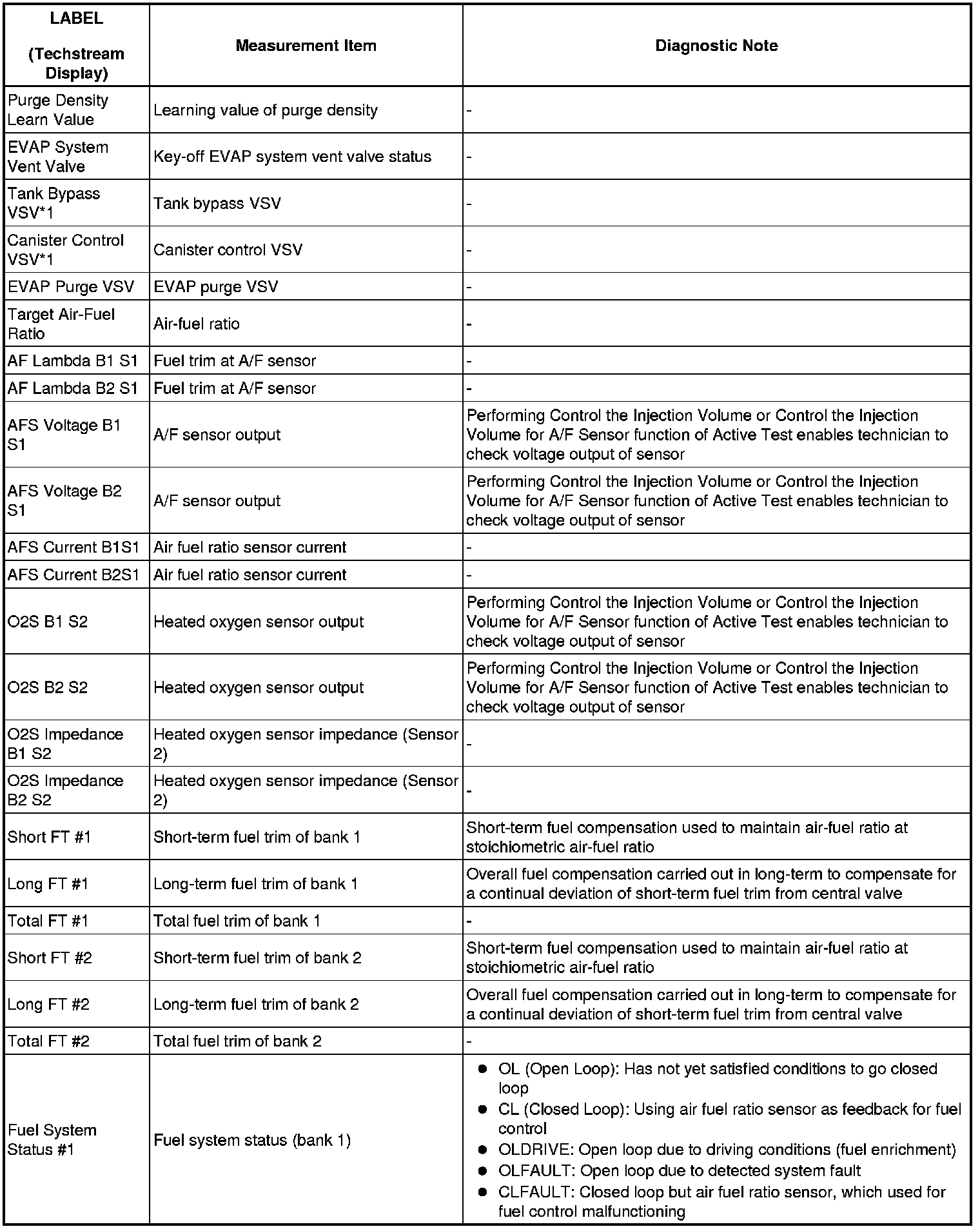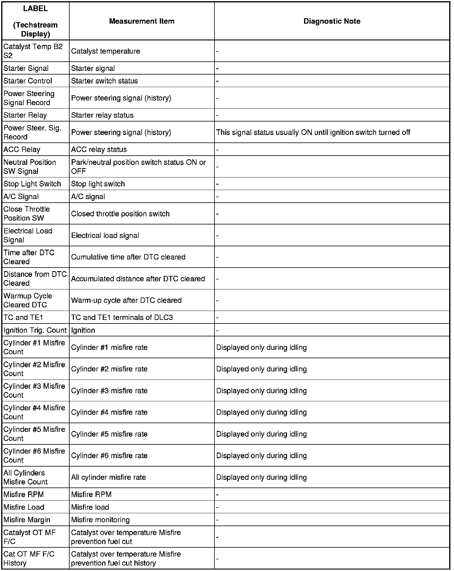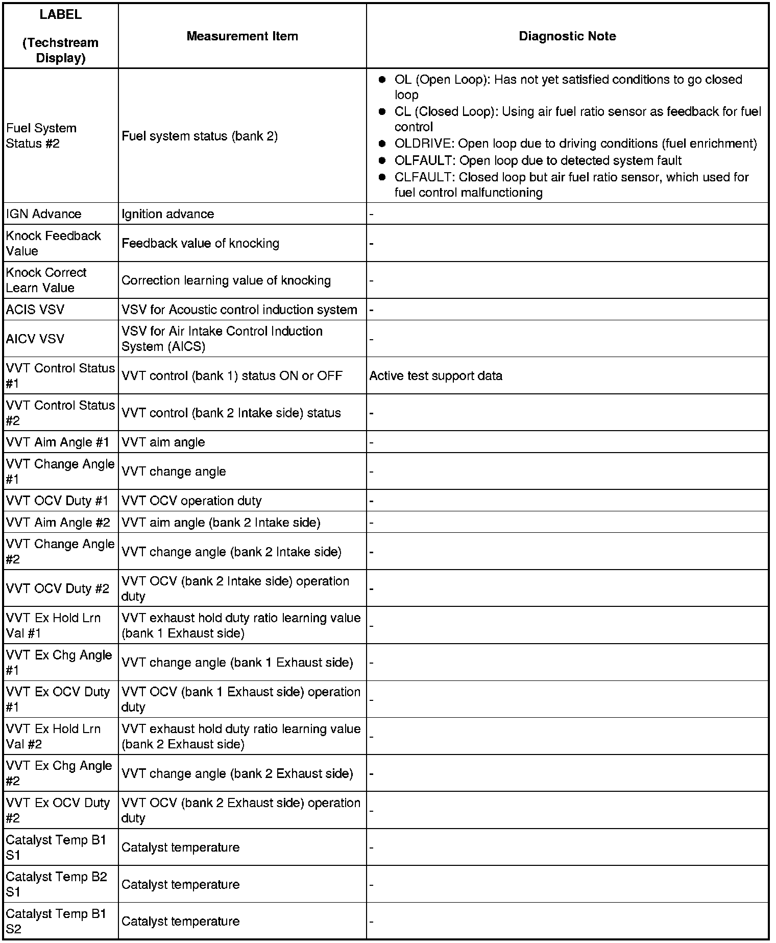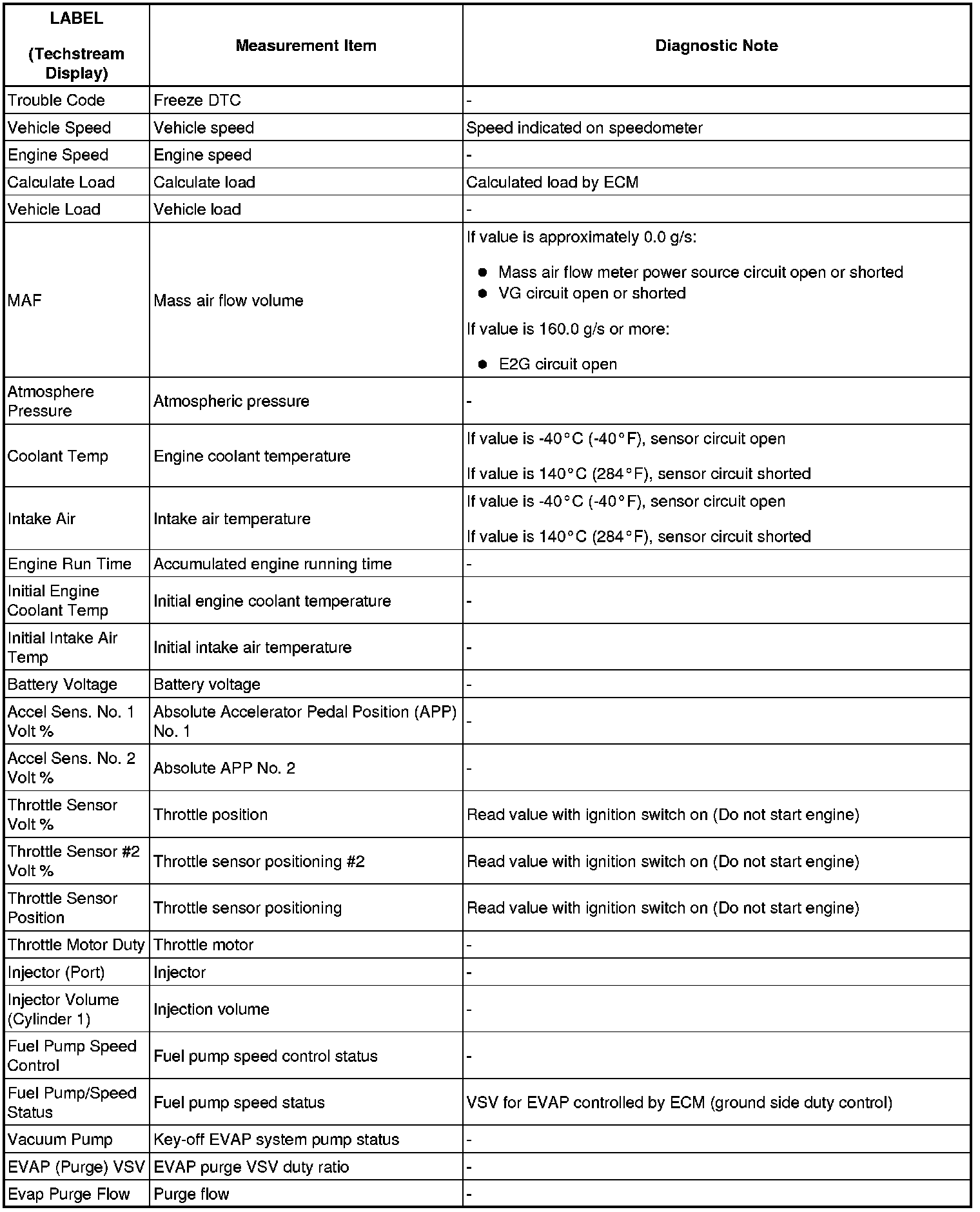 2GR-FE ENGINE CONTROL SYSTEM: SFI SYSTEM: FREEZE FRAME DATA