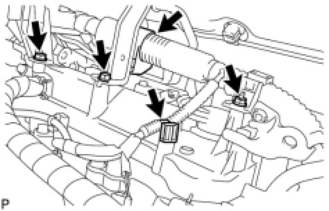 (b) Install the 2 bolts, 2 clamps, and nut.