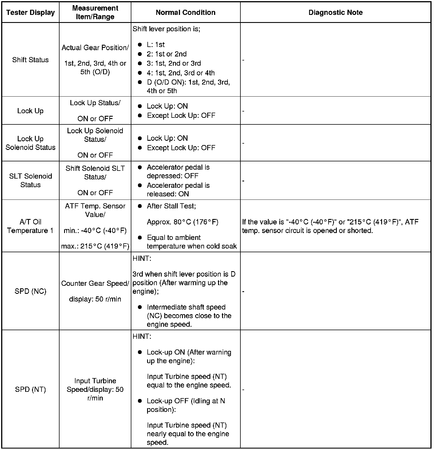 U151F AUTOMATIC TRANSAXLE: AUTOMATIC TRANSAXLE SYSTEM: DATA LIST / ACTIVE TEST