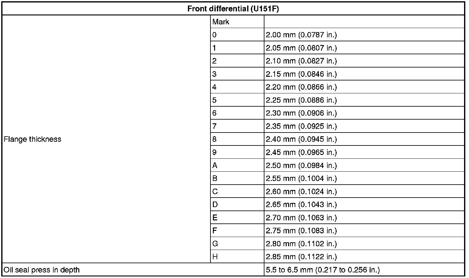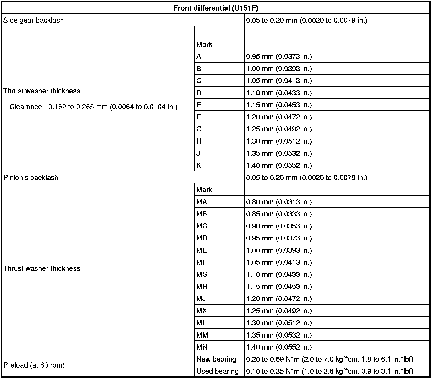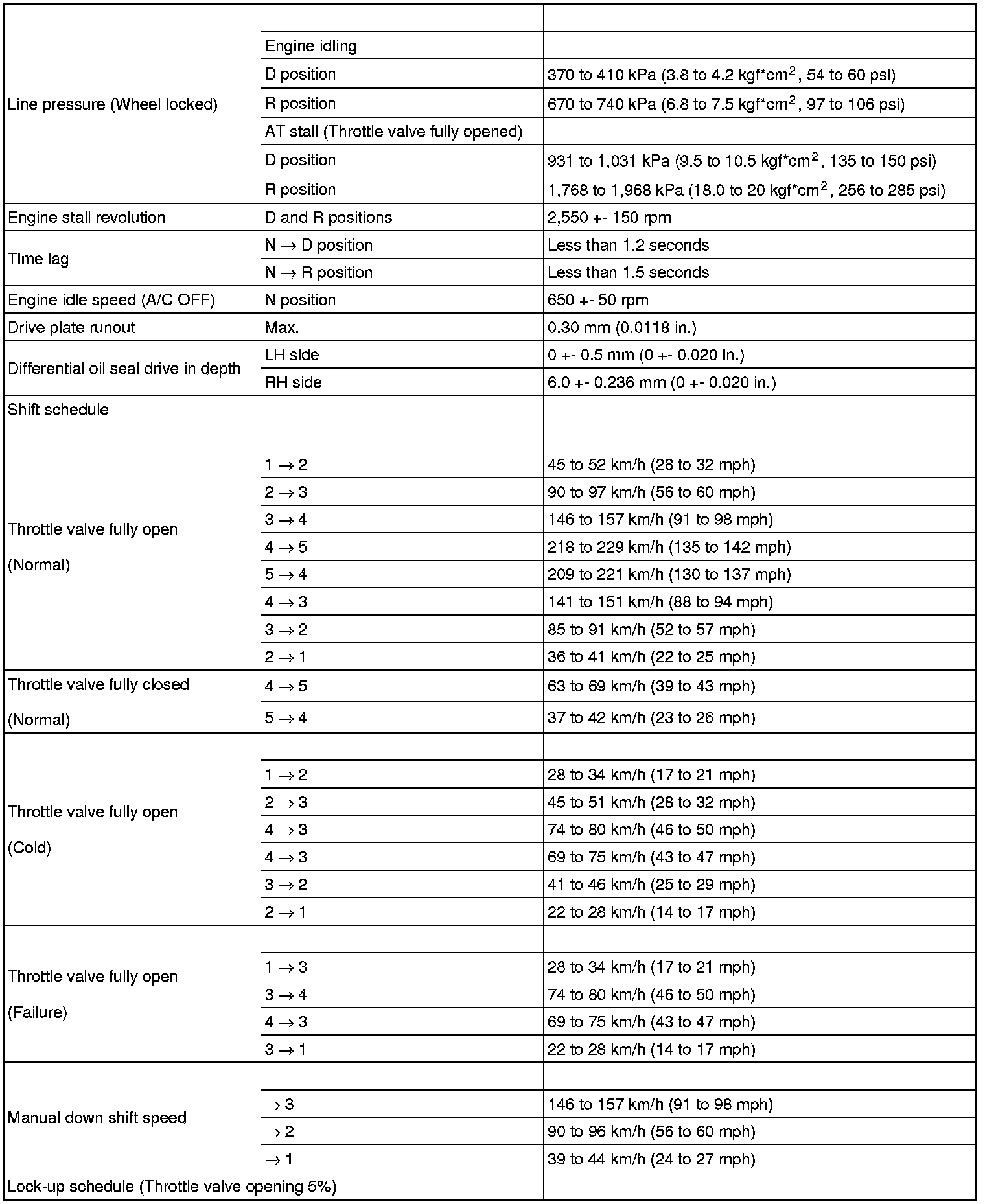 SERVICE SPECIFICATIONS: U151F AUTOMATIC TRANSAXLE: SERVICE DATA