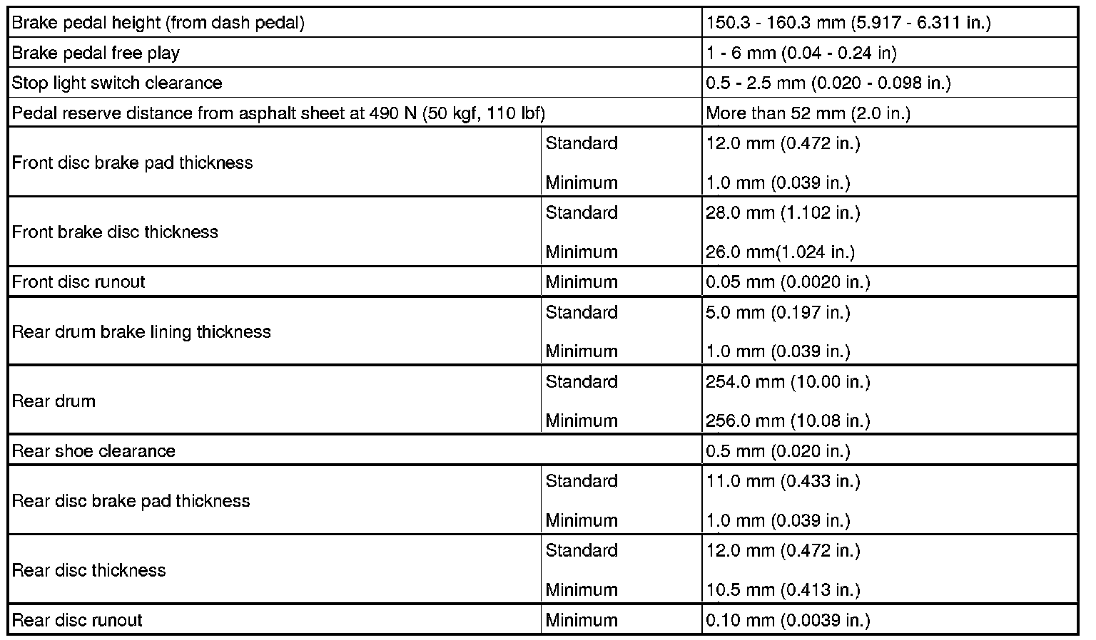 SERVICE SPECIFICATIONS: BRAKE: SERVICE DATA