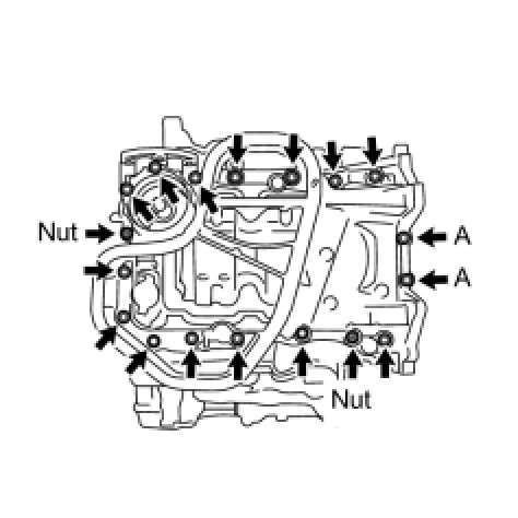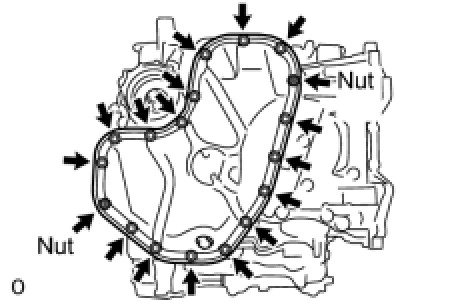 OIL PAN SUB-ASSEMBLYInstall the oil pan with the 16 bolts and 2 nuts.