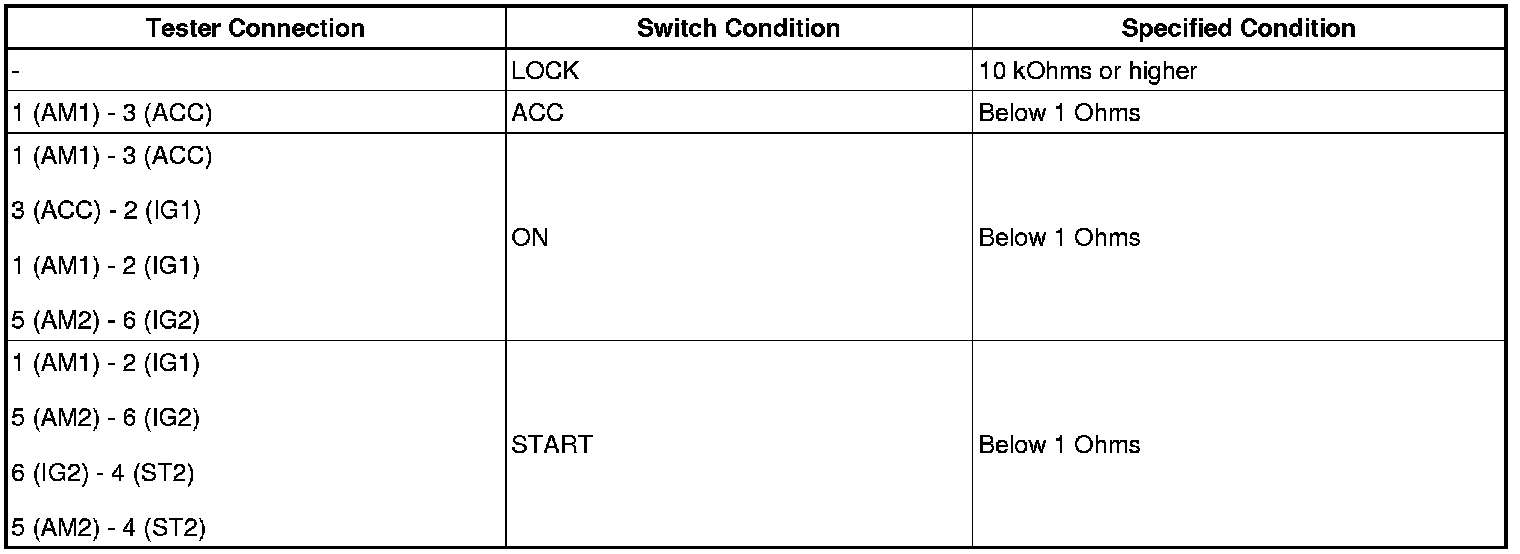 2GR-FE STARTING: IGNITION SWITCH: INSPECTION