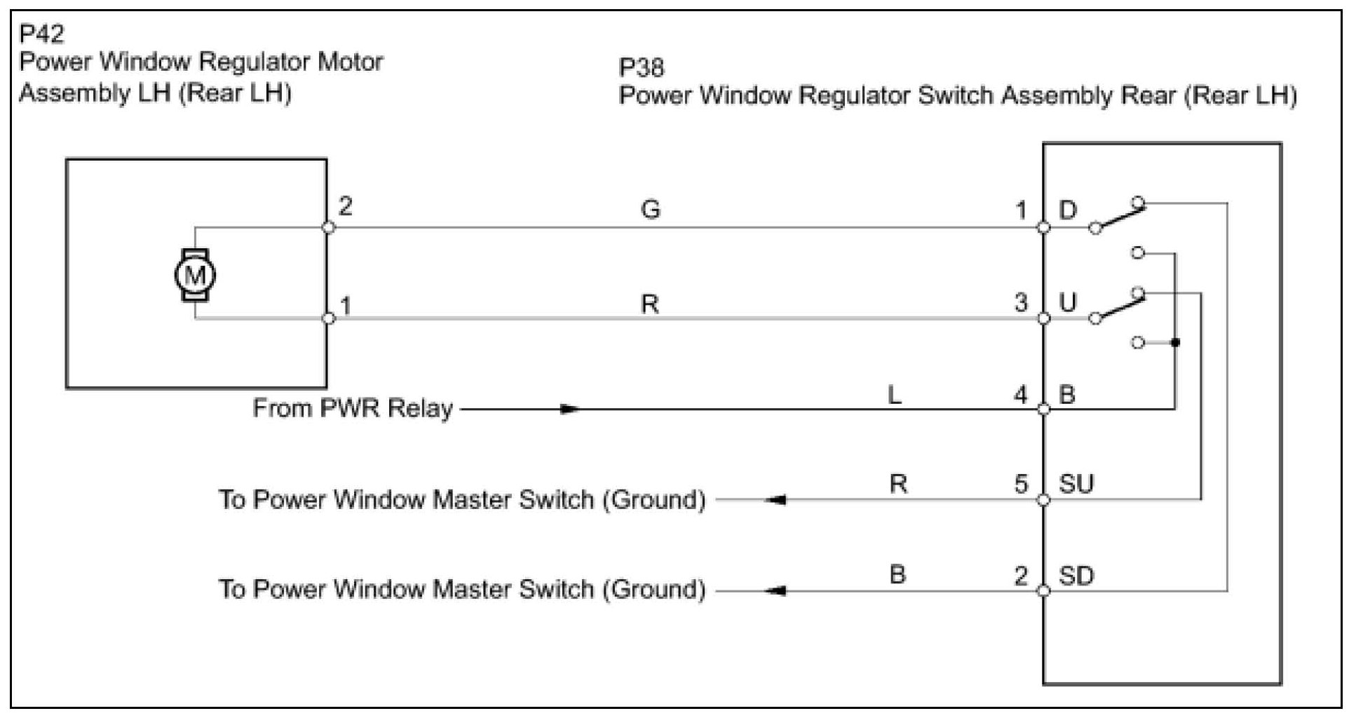 If the manual UP/DOWN function does not operate, the power window motor, the regulator switch or the wire harness may be malfunctioning.