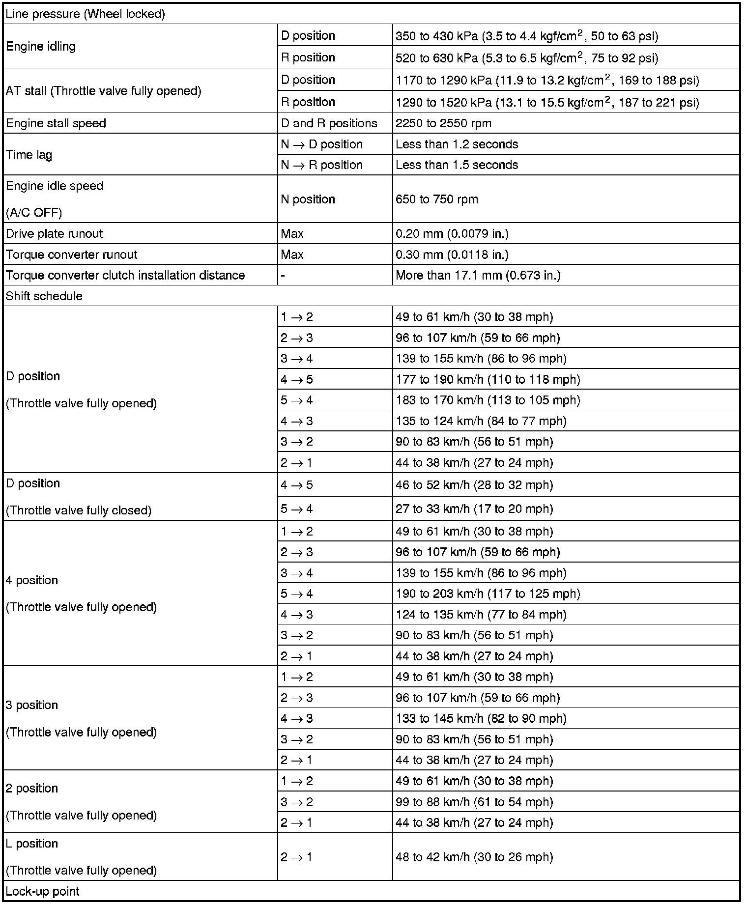 SERVICE SPECIFICATIONS: A750E AUTOMATIC TRANSMISSION: SERVICE DATA