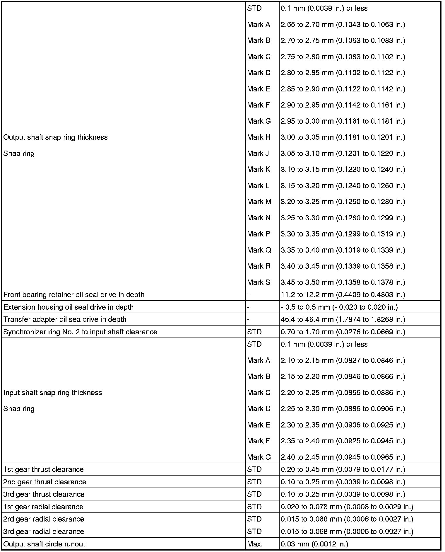 SERVICE SPECIFICATIONS: R155F MANUAL TRANSMISSION: SERVICE DATA