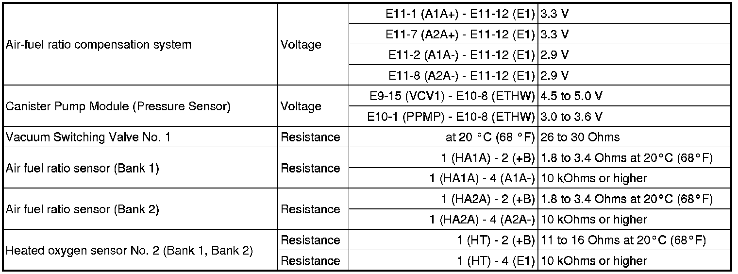 SERVICE SPECIFICATIONS: 1GR-FE EMISSION CONTROL: SERVICE DATA