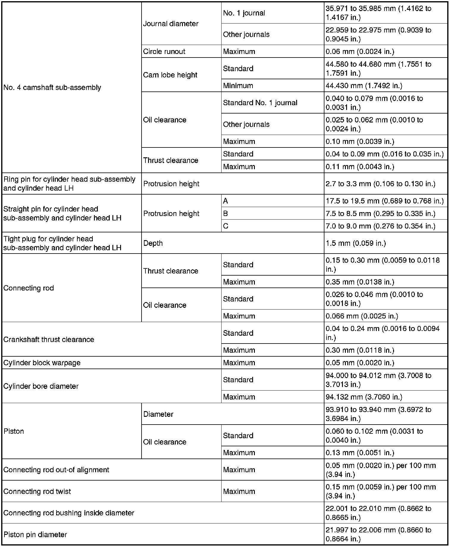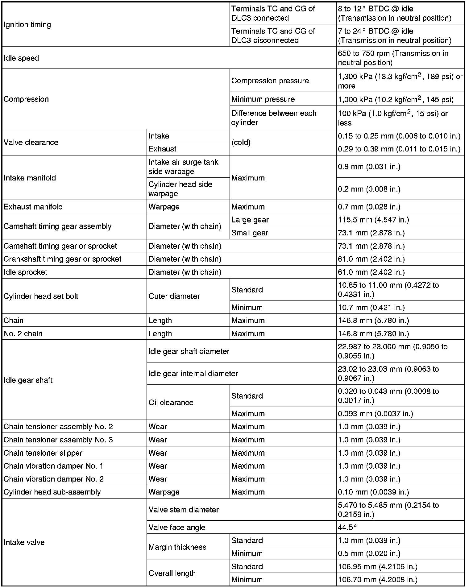 SERVICE SPECIFICATIONS: 1GR-FE ENGINE MECHANICAL: SERVICE DATA