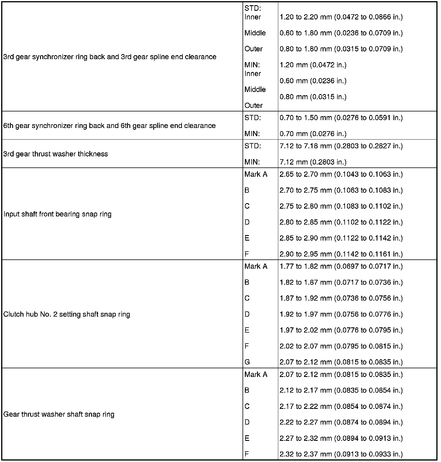 SERVICE SPECIFICATIONS: RA60F MANUAL TRANSMISSION: SERVICE DATA