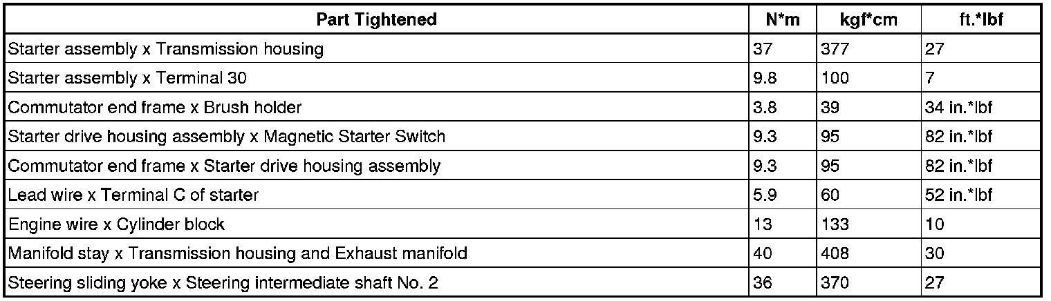 SERVICE SPECIFICATIONS: 1GR-FE STARTING: TORQUE SPECIFICATIONS