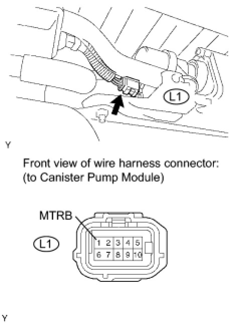 (c) Apply the battery voltage to terminals 9 and 8 of the canister pump module.