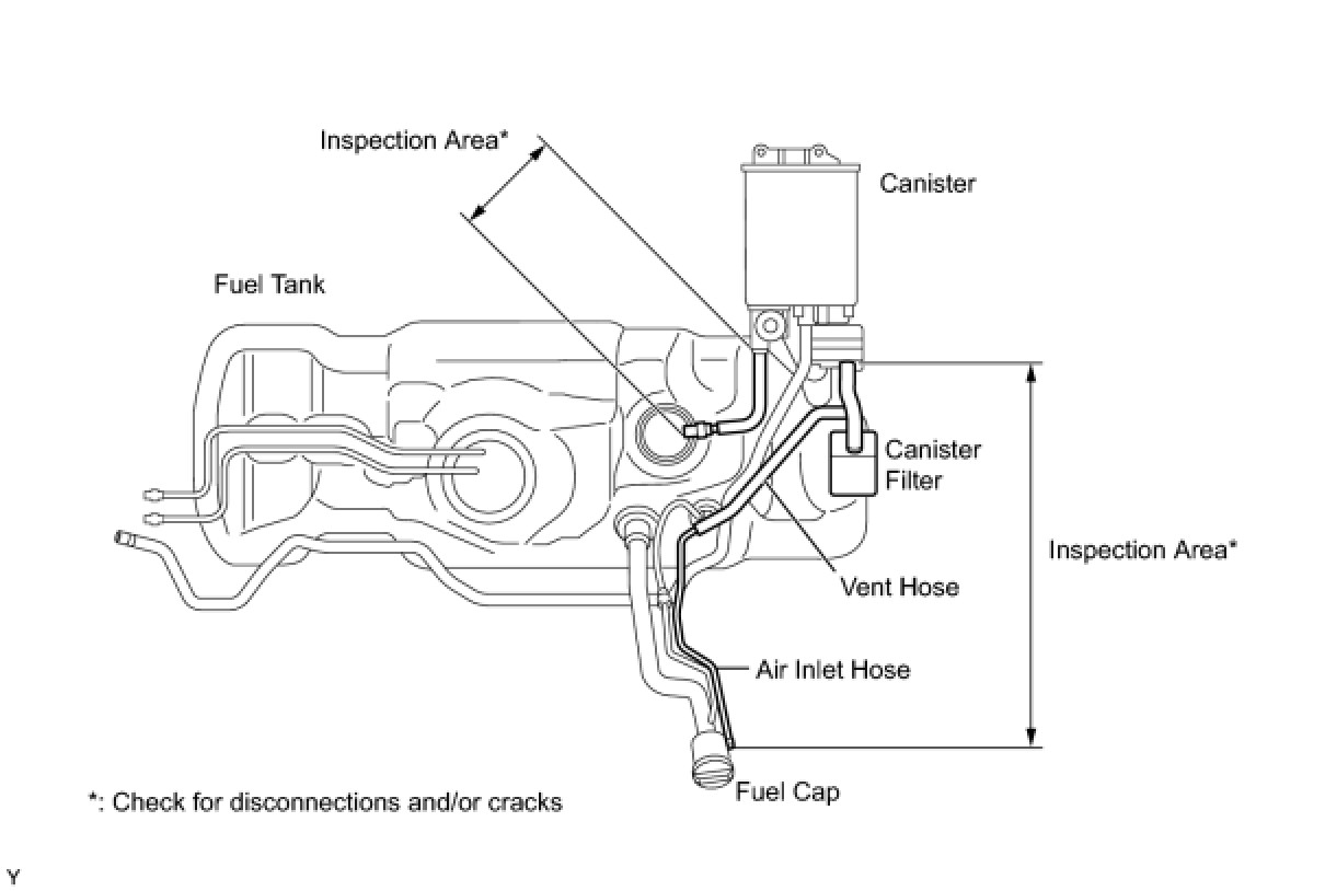 HINT: Disconnect the hose between the canister and the fuel tank from the canister. Block the canister side and conduct an inspection. In this way, the fuel tank can be excluded as an area suspected of causing fuel leaks.
