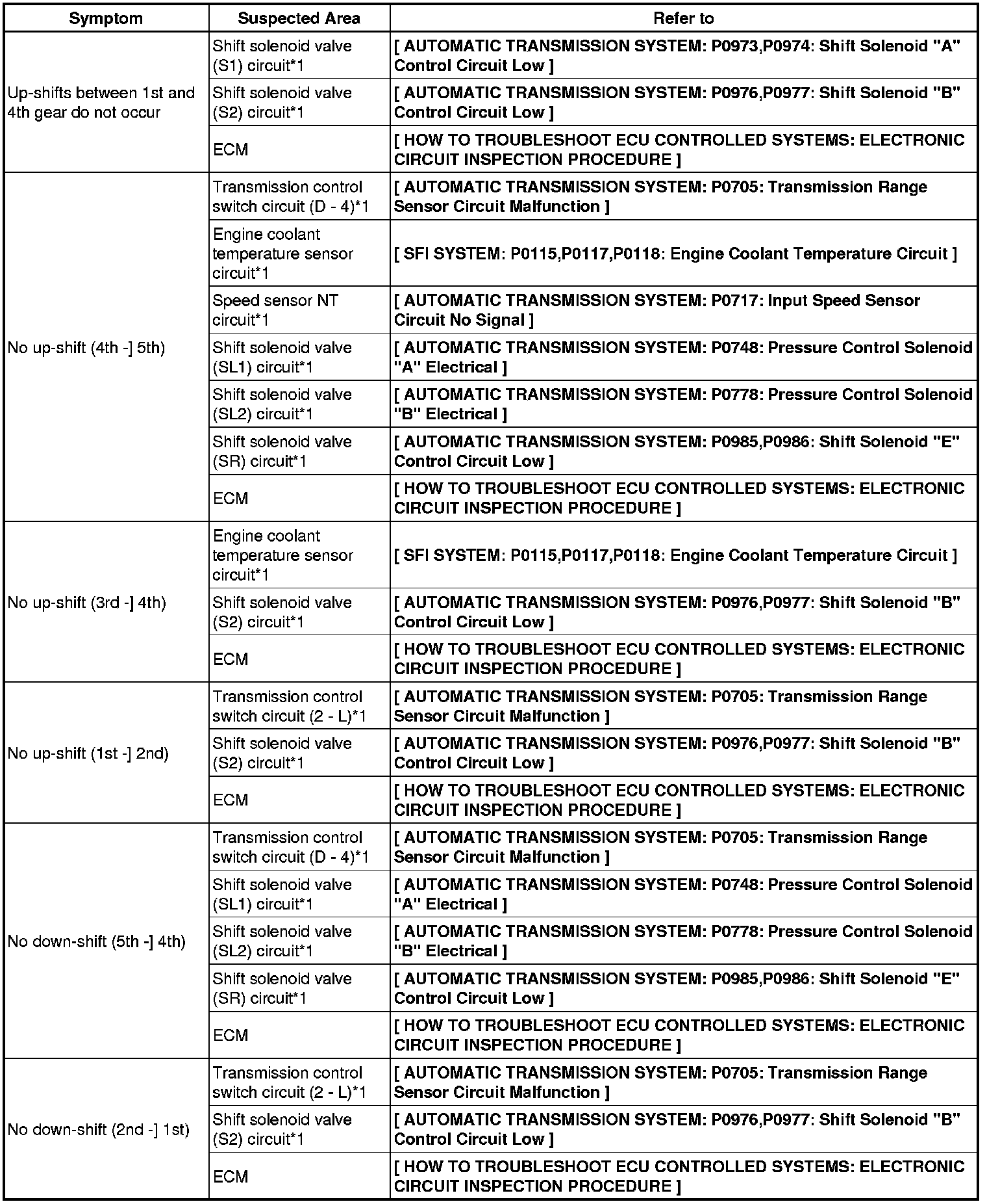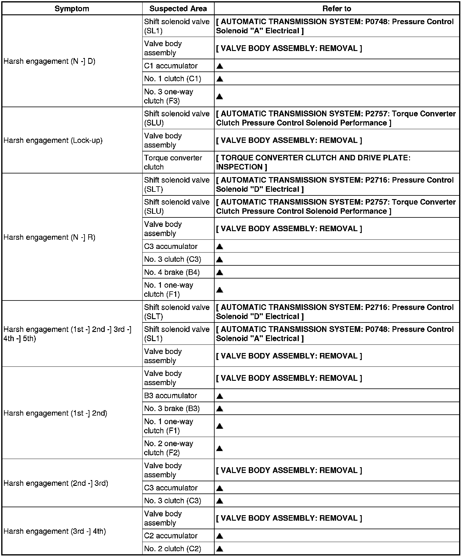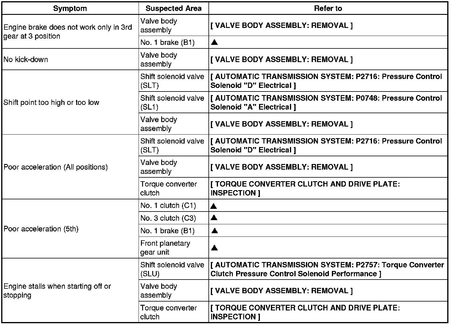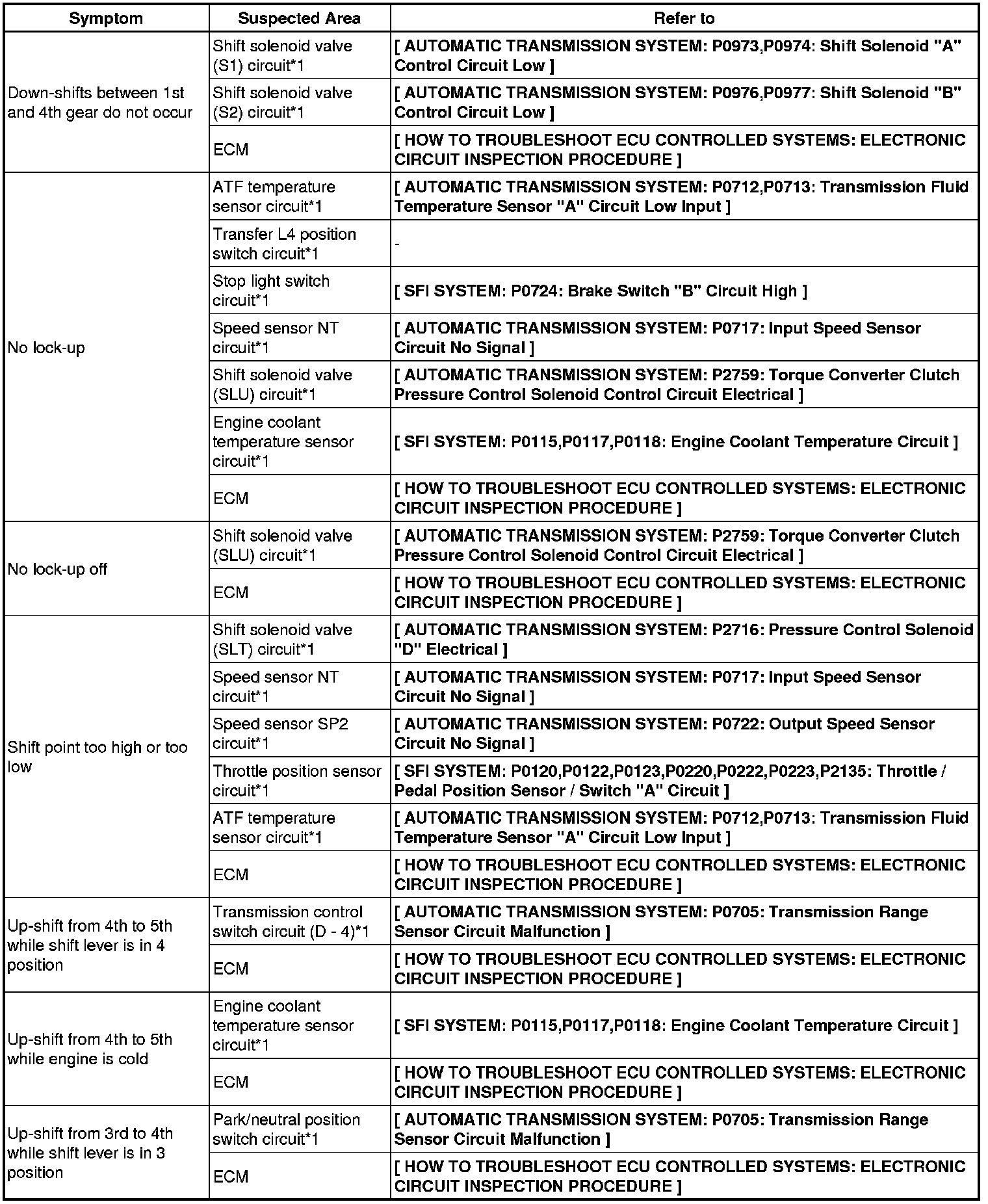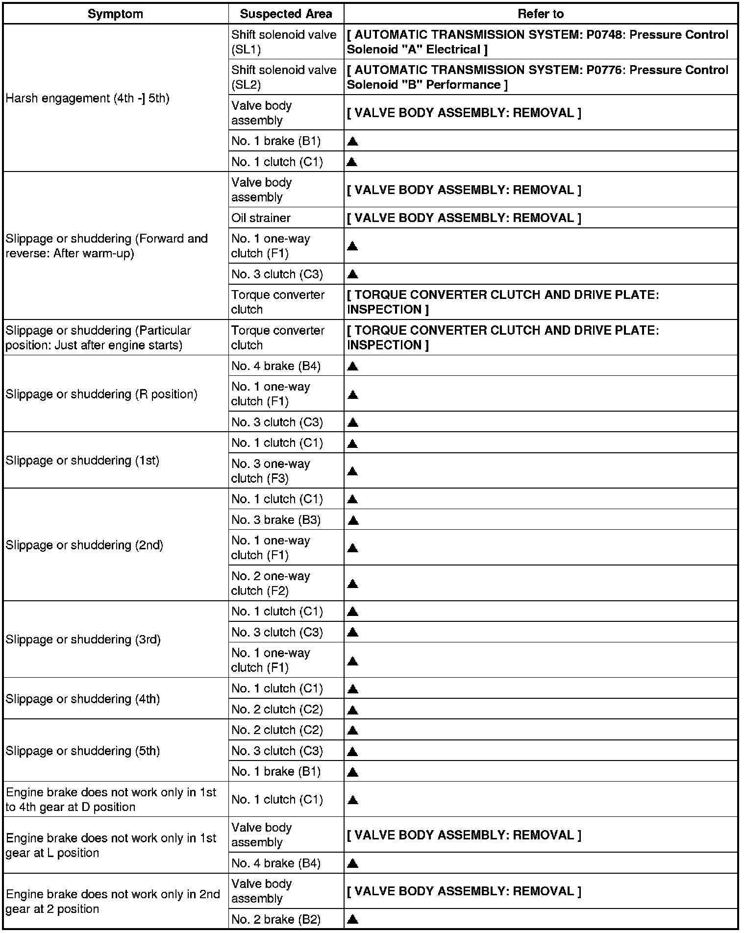 A750E AUTOMATIC TRANSMISSION: AUTOMATIC TRANSMISSION SYSTEM: PROBLEM SYMPTOMS TABLE
