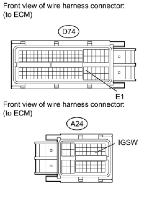 (a) Disconnect the D74 and A24 ECM connectors.