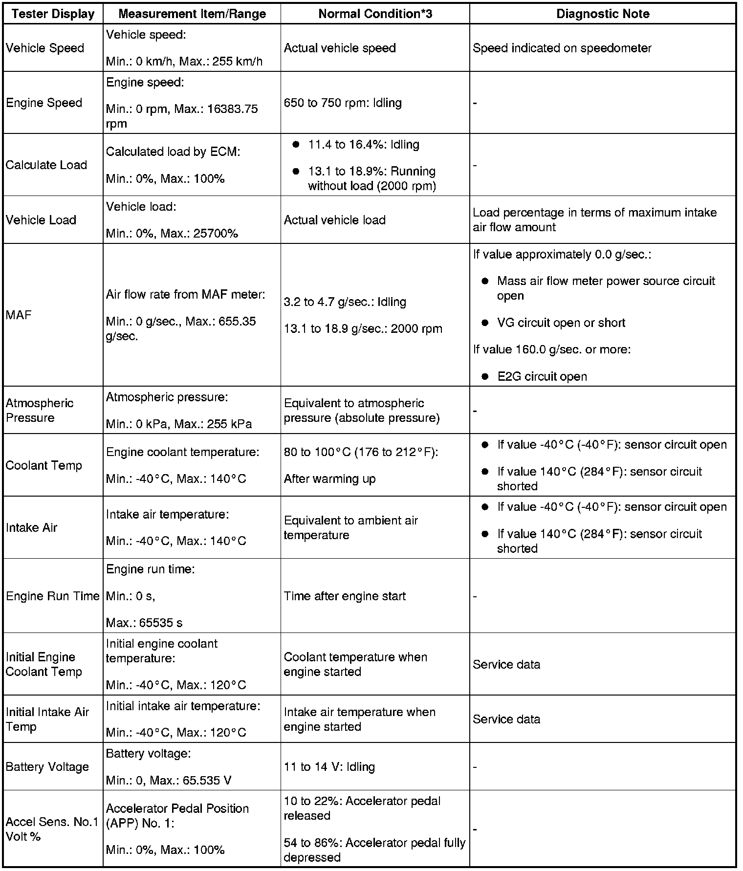- *3: If no idling conditions are specified, the shift lever should be in the N or P position, and the A/C switch and all accessory switches should be OFF.