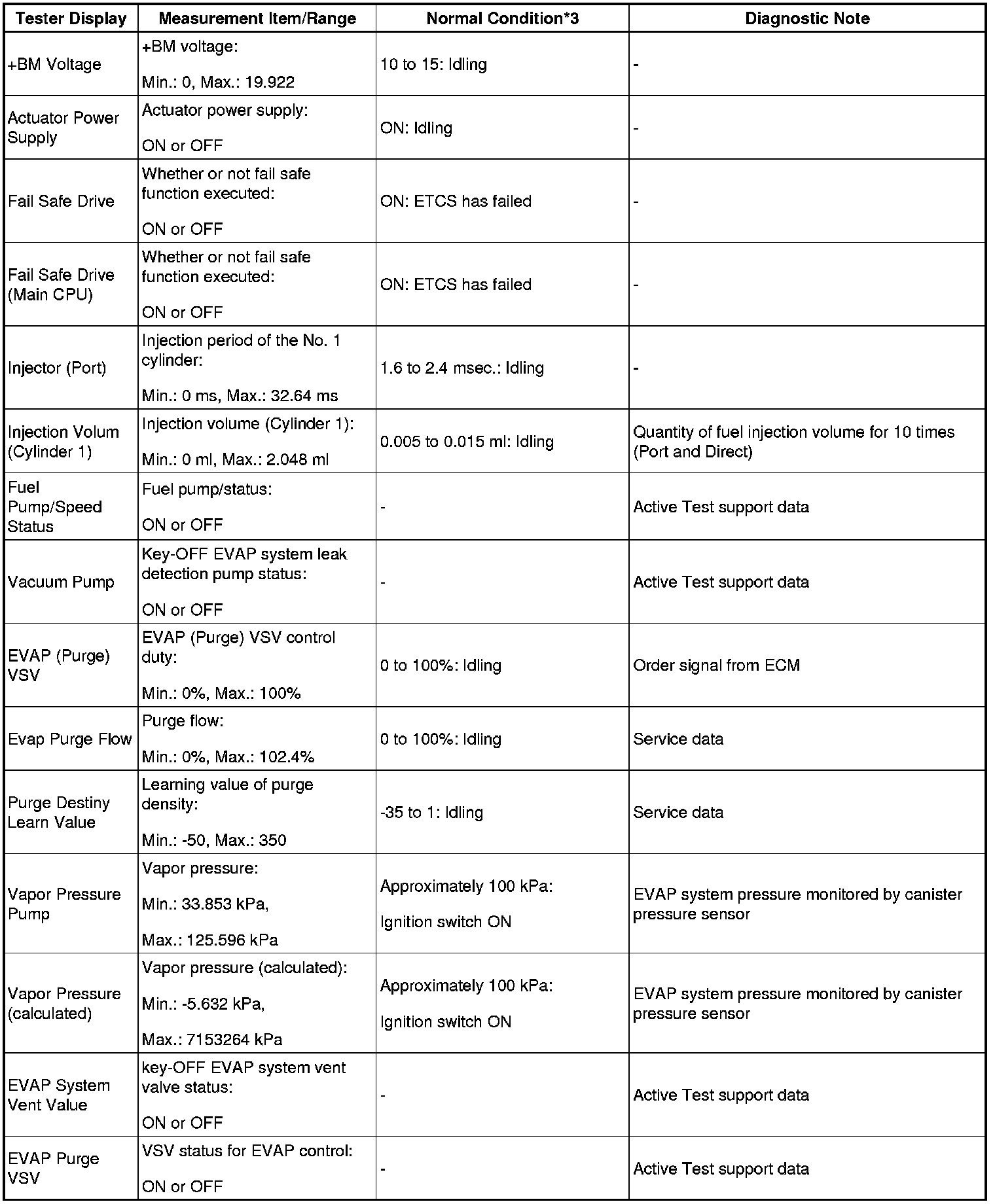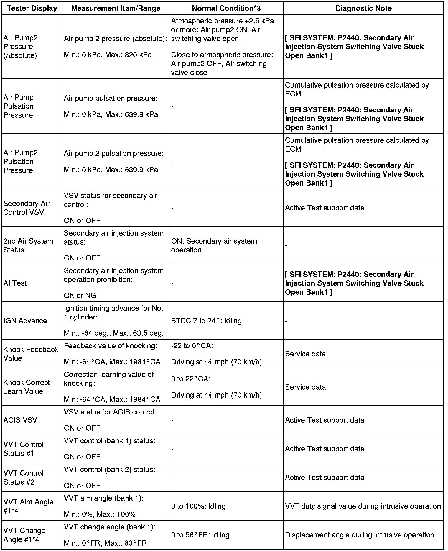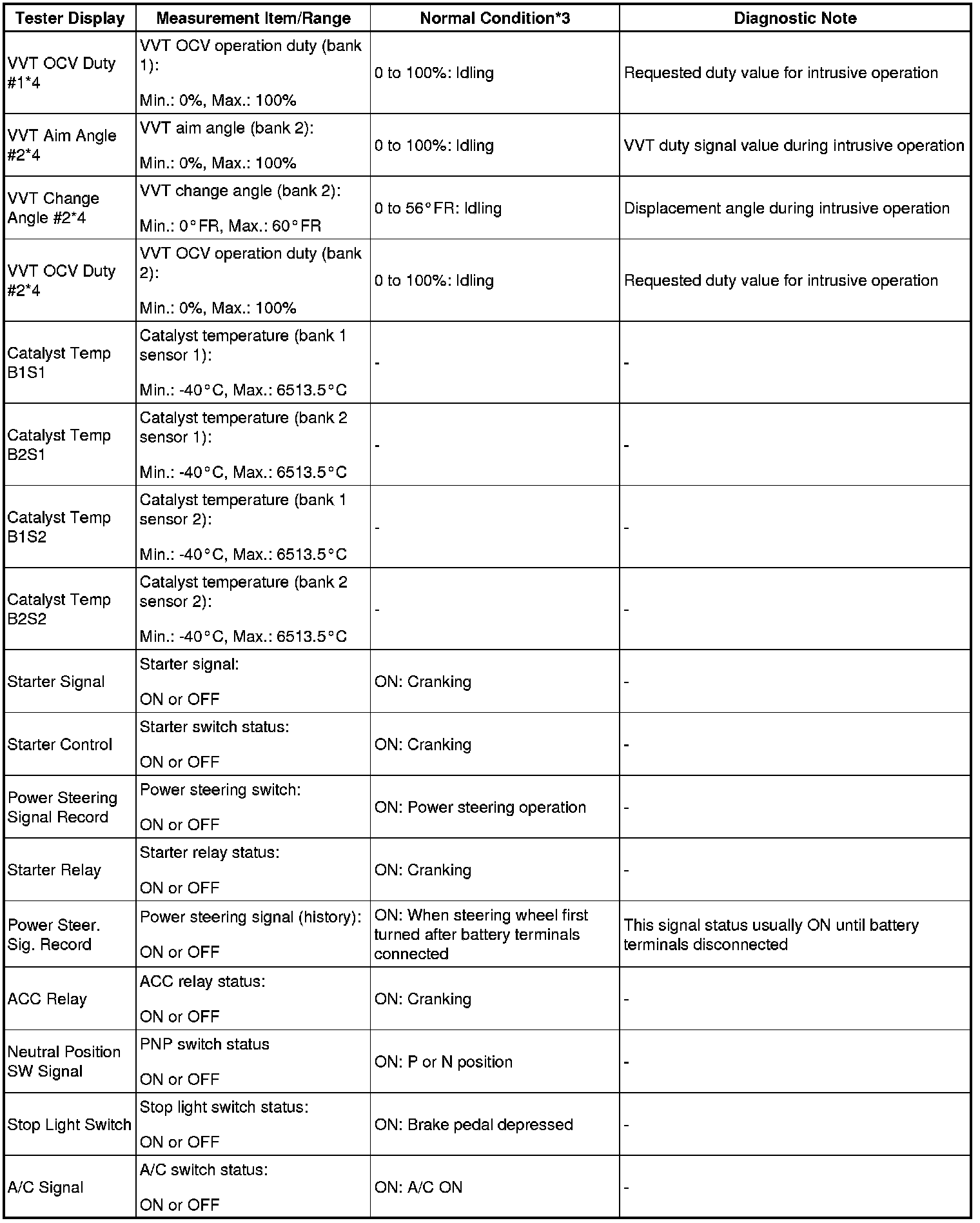 - *4: Data List values are only displayed when performing the following Active Tests: Control the VVT Linear (Bank1), Control the VVT Linear (Bank2), Control the VVT Exhaust Linear (Bank1) and Control the VVT Exhaust Linear (Bank2). For other Active Tests, the Data List value will be 0.