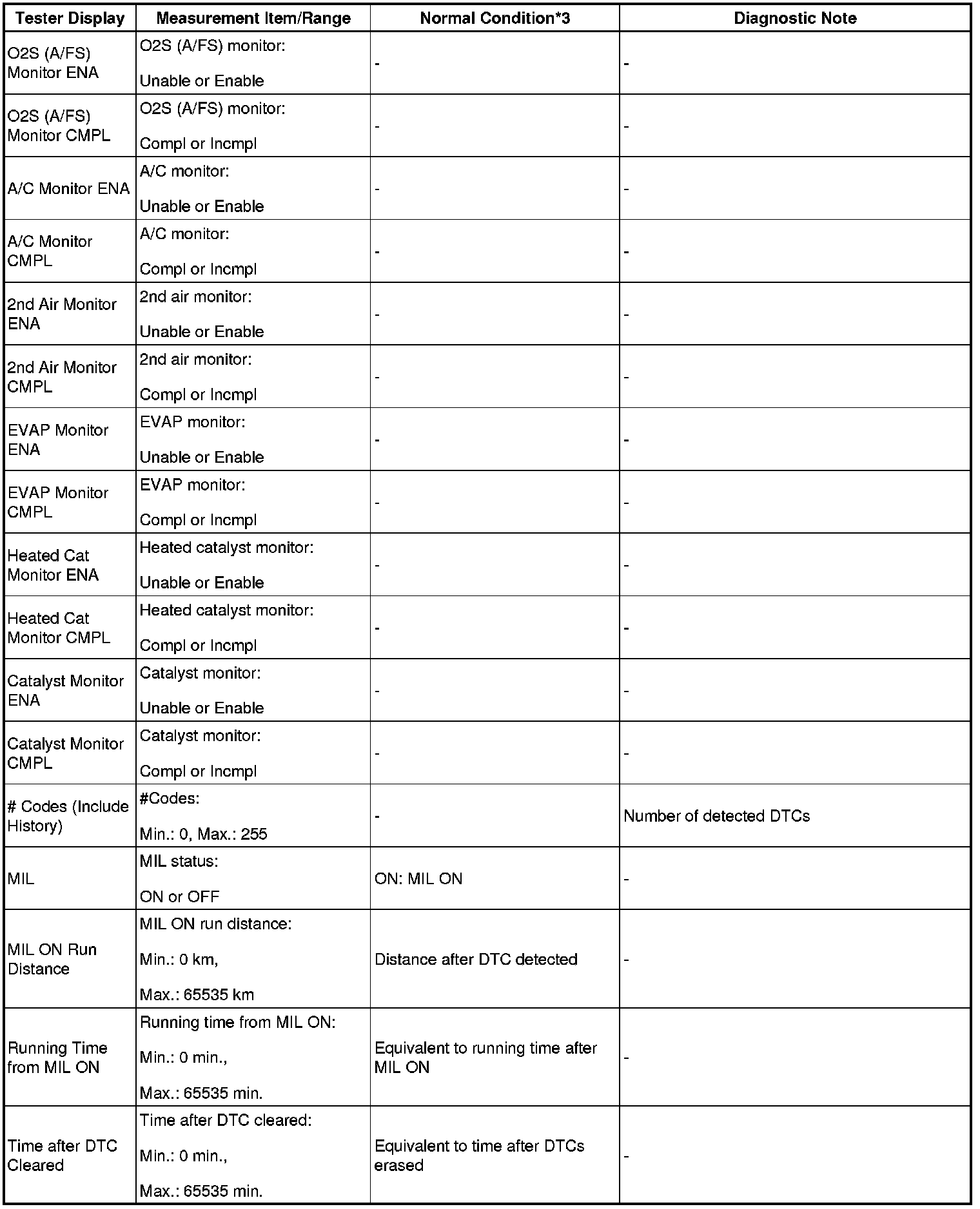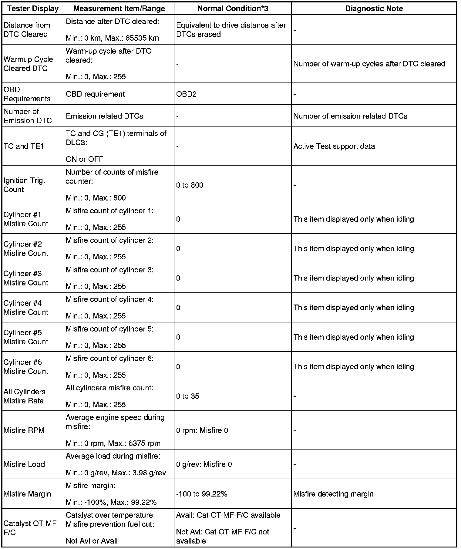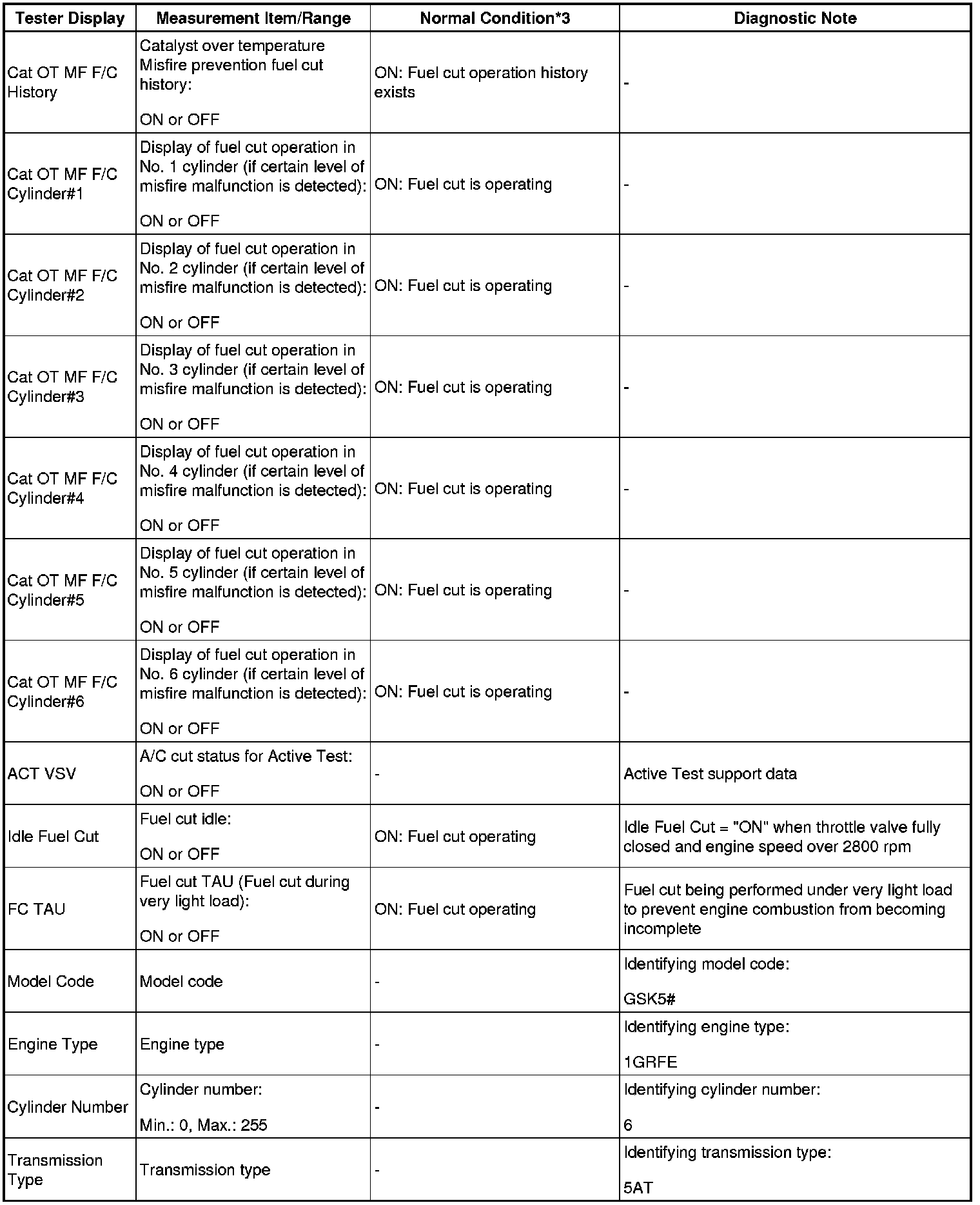 - *3: If the display of the Data List's CAT OT MF F/C item is Not Avl, perform this Active Test with the vehicle stopped and the engine idling.