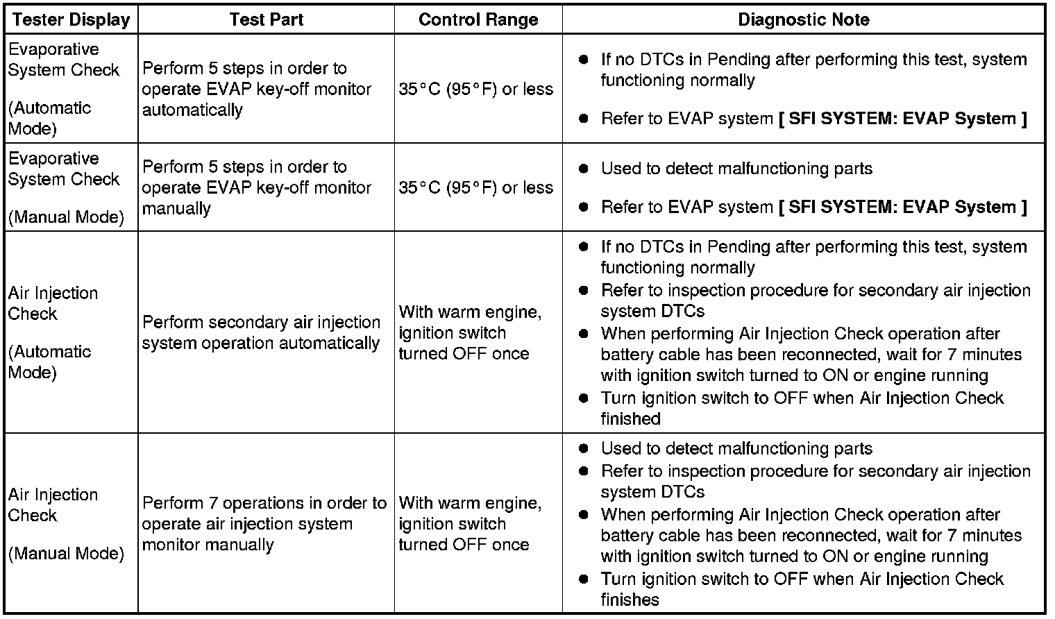 (e) Perform the System Check by referring to the table below.