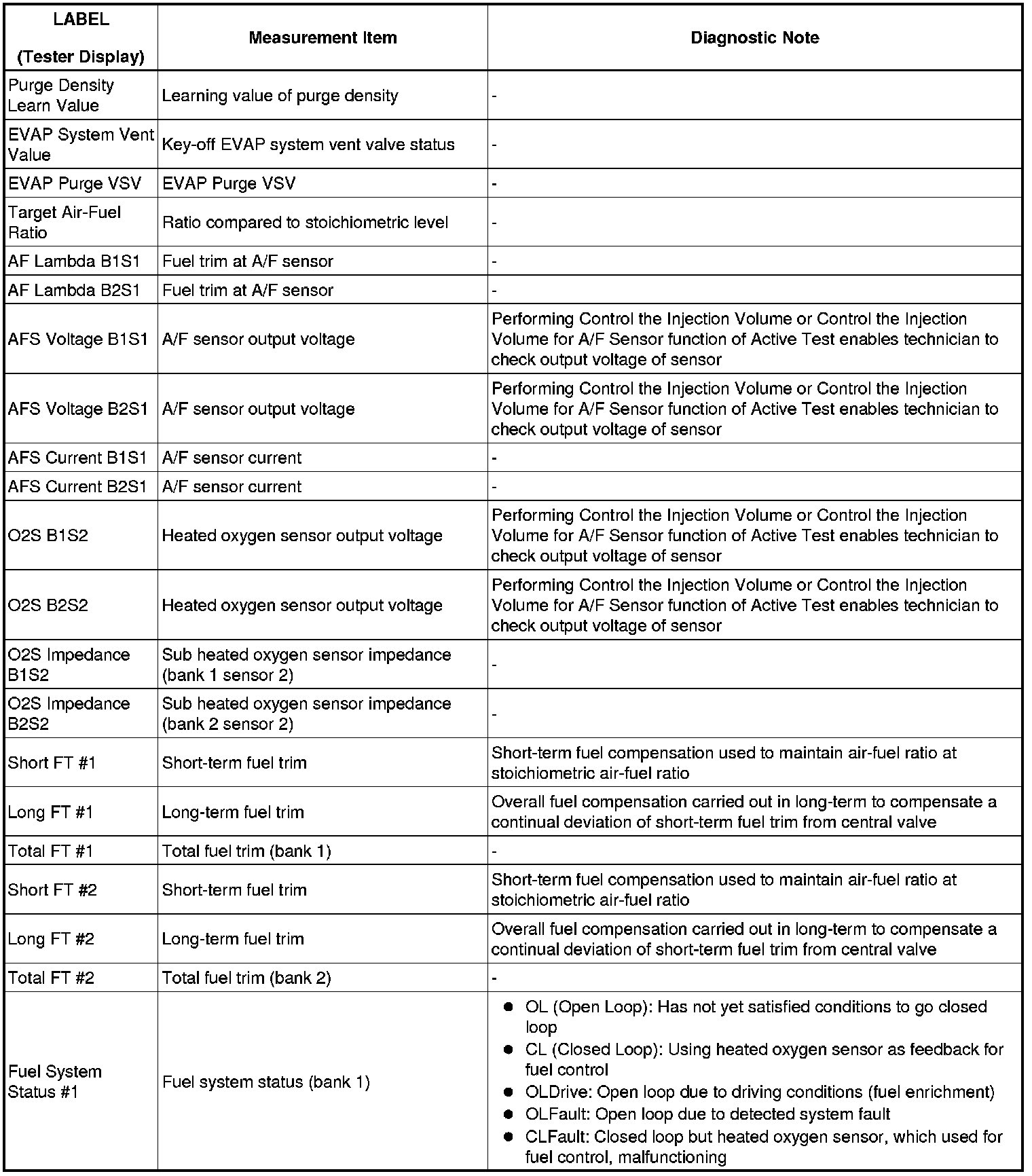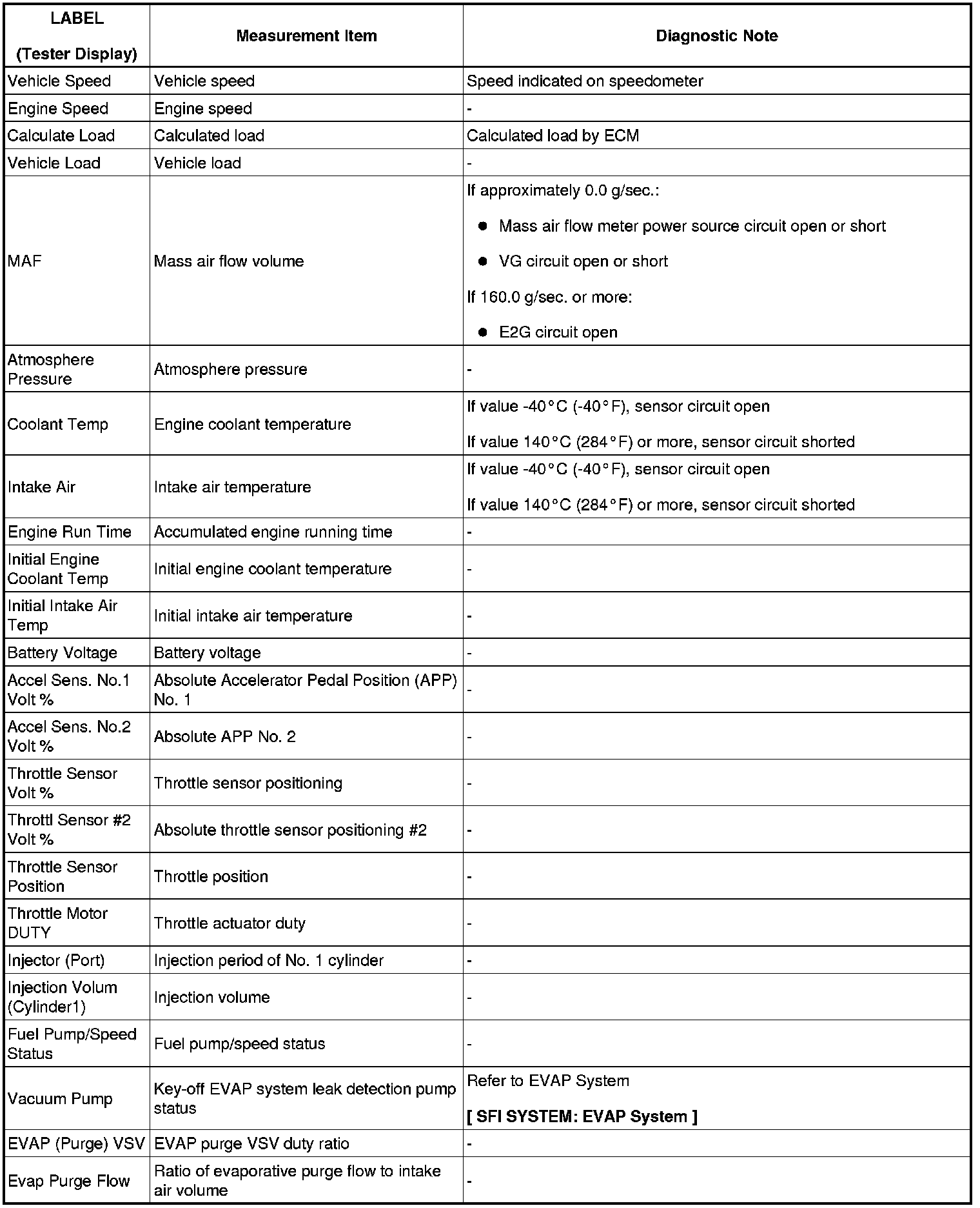 1GR-FE ENGINE CONTROL SYSTEM: SFI SYSTEM: FREEZE FRAME DATA